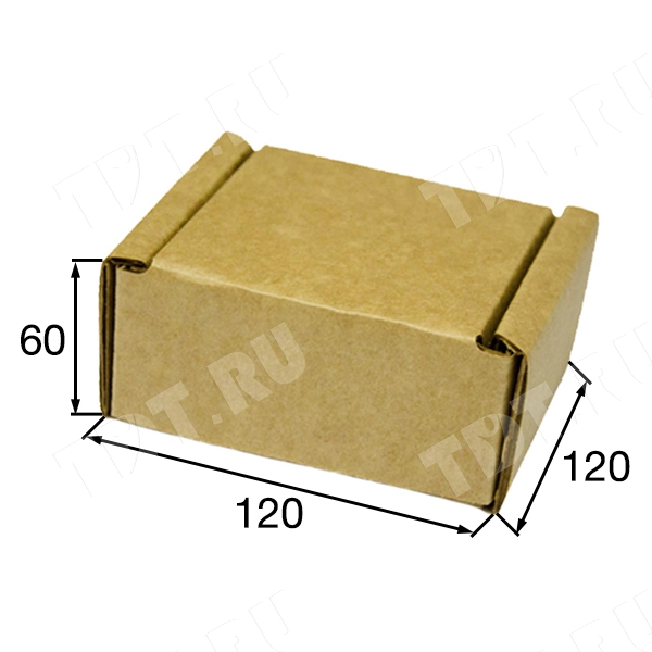 Короб КС-4 бурый, длиной 120 мм, шириной 120 мм и высотой 60 мм. Изготовлен из трёхслойного картона Т-24 В. Полезный объём — 0.86 л.
