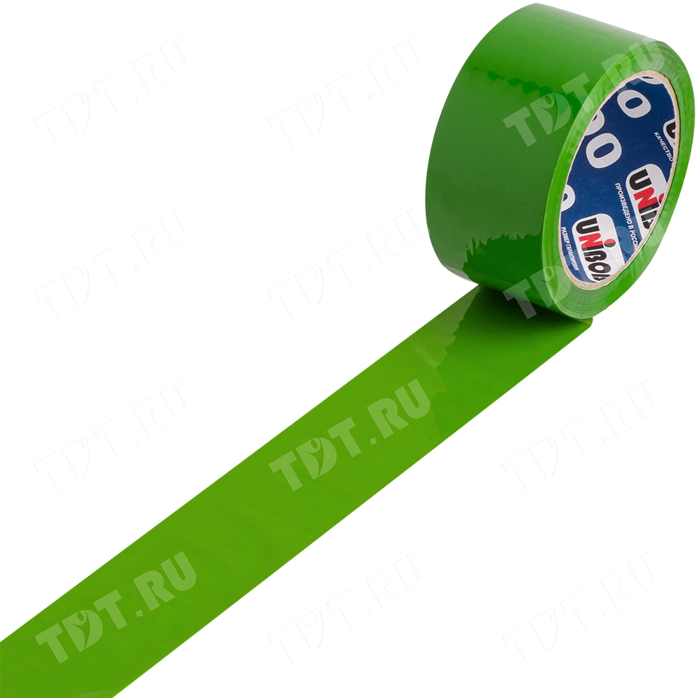 Зеленая клейкая лента Unibob® шириной 48 мм, диаметром втулки 76 мм, намоткой 66 метров. Изготовлена на основе полипропилена.