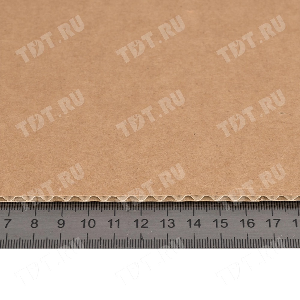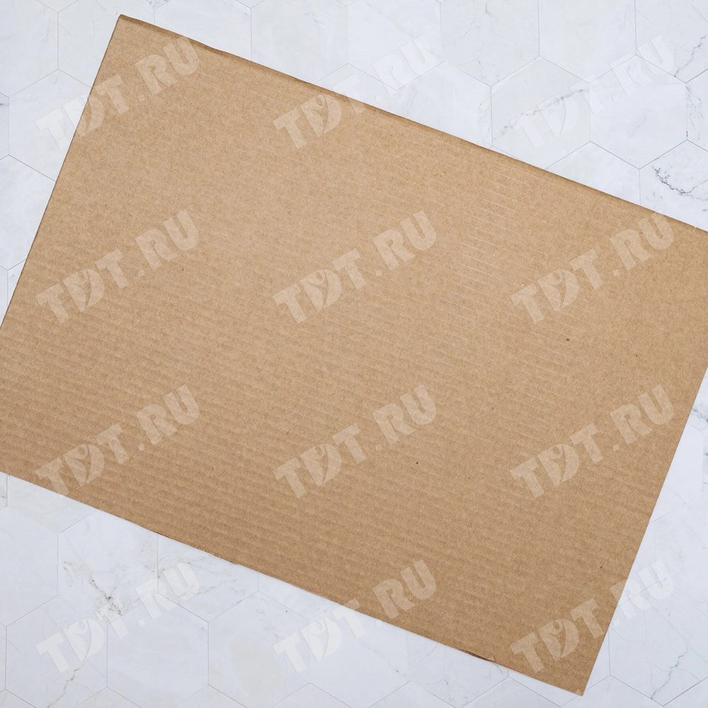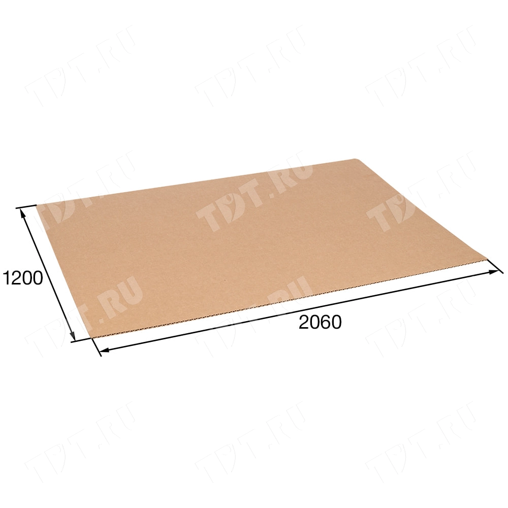Трехслойный лист гофрокартона, бурого цвета, марки Т-24 В, длиной 2060 мм, шириной 1200 мм, толщиной 2.5-3.2 мм, площадью 2.47 м², направление волны вдоль стороны 1200 мм. Для производства листов используется только первичное высококачественное сырье. Производится в России.