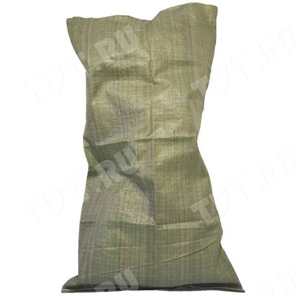 Полипропиленовый мешок, зеленого цвета, длиной 95 см, шириной 55 см, весом 43 г. Материал – полипропилен (ПП). Производится в России.