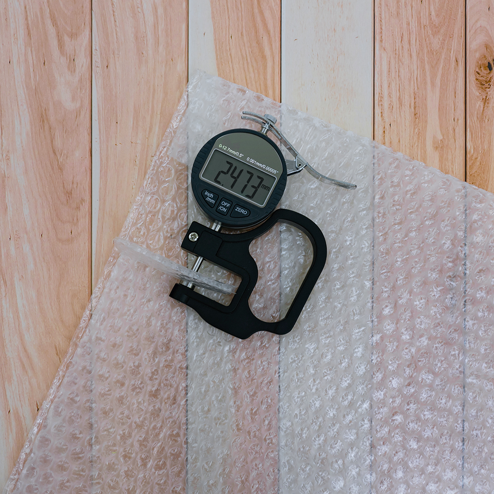 У трехслойных пакетов с внешней и внутренней стороны гладкий полиэтилен (плоский слой - пузырьки - плоский слой).