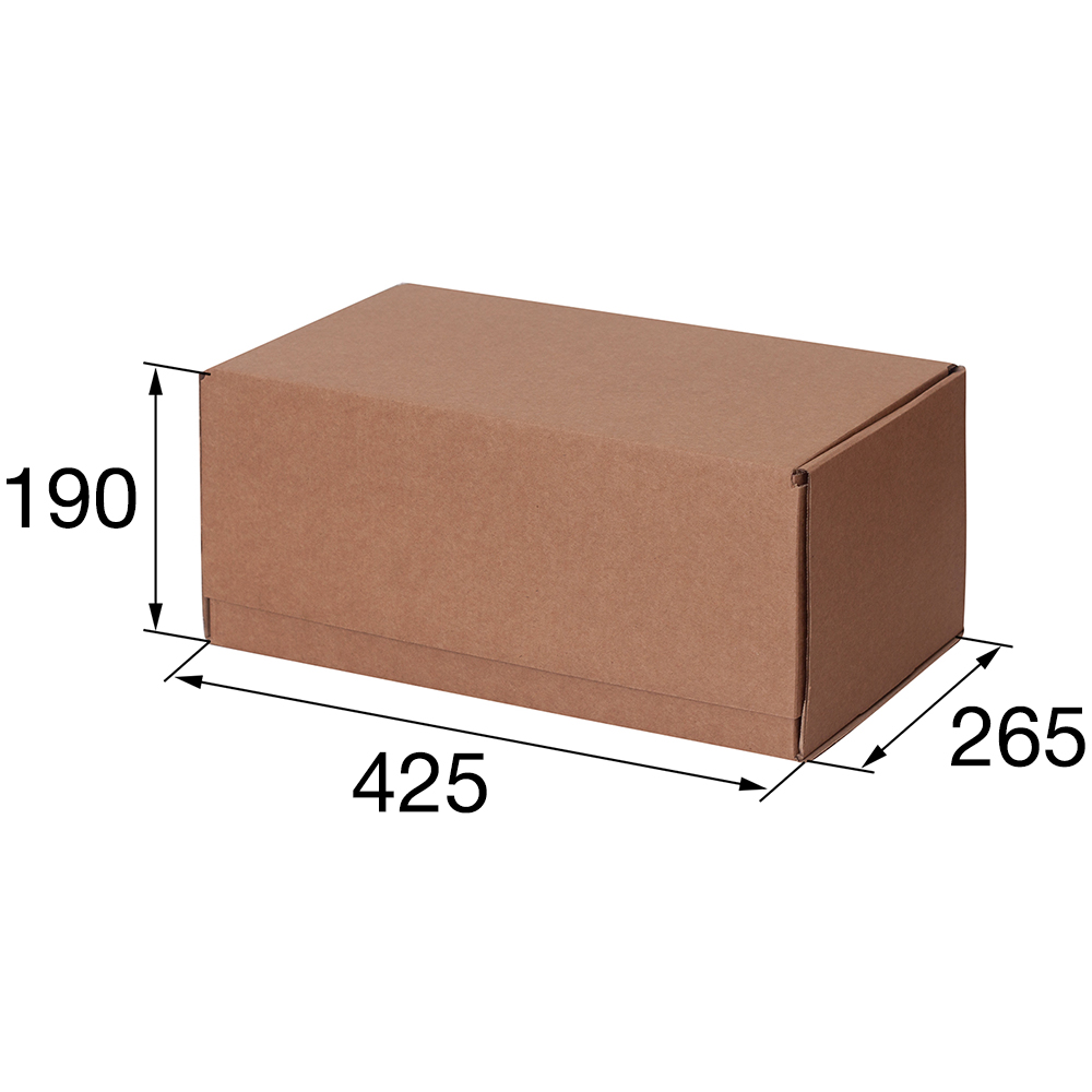 Почтовый короб тип «Б» бурого цвета, длиной 425 мм, шириной 265 мм и высотой 190 мм. Изготовлен из трёхслойного гофрокартона Т-23 В. Полезный объём — 21.40 л.