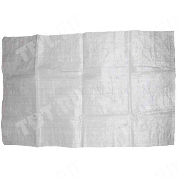 Полипропиленовый мешок, белого цвета, длиной 95 см, шириной 55 см, весом 58 г. Материал – полипропилен (ПП). Производится в России.