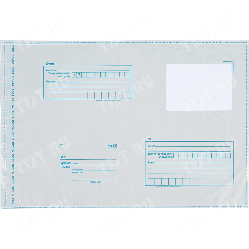 Практичный пакет для Почты России из пластика подойдет для посылки почтовых отправления среднего размера. Конверт более прочен по сравнению с бумажным, то есть в него можно положить больше почтовых отправлений (открыток, документов).