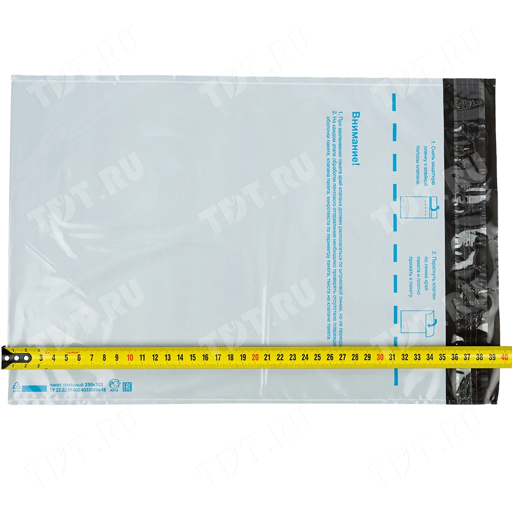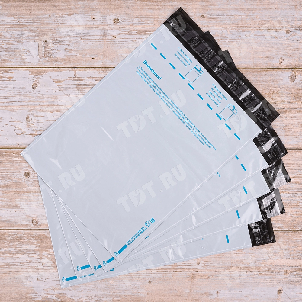 Почтовый пластиковый пакет не тянется, выдерживает большой вес и прочен на разрыв.