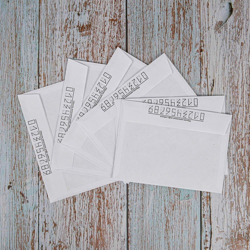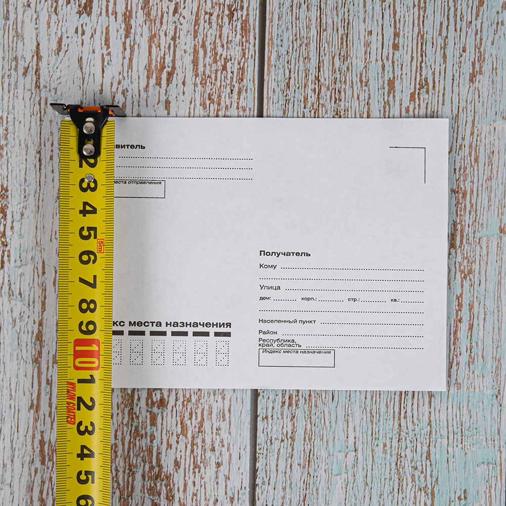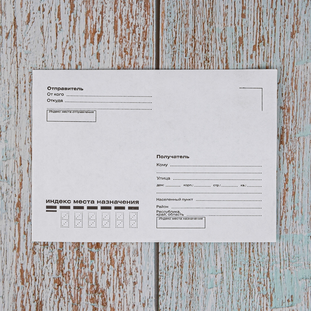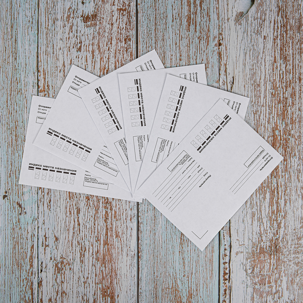 Стандартный бумажный конверт (114*162 мм) для отправки уведомлений, корреспонденции, различной документации почтой России.