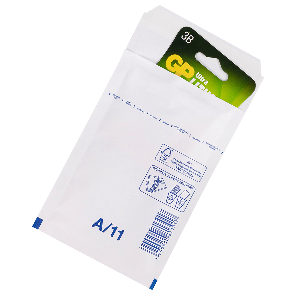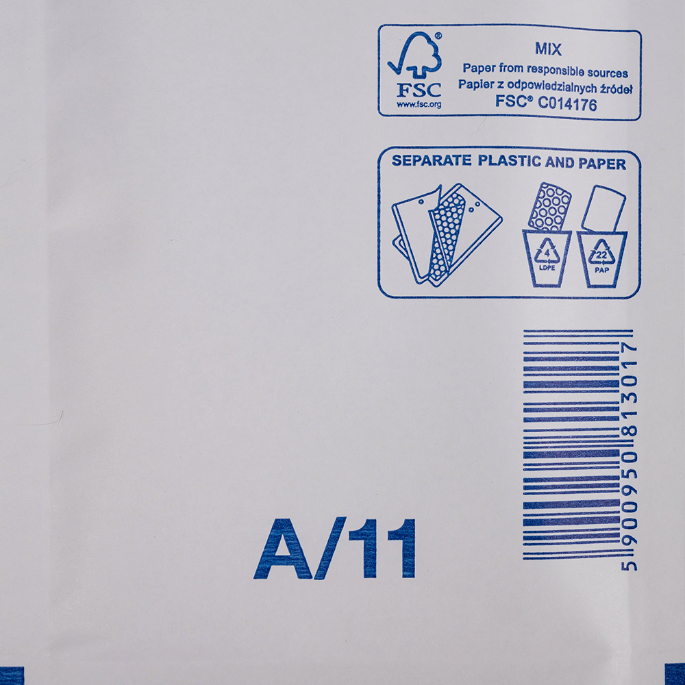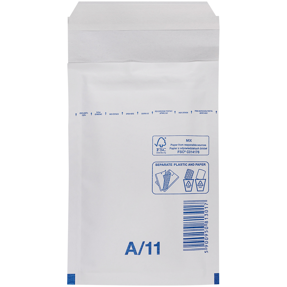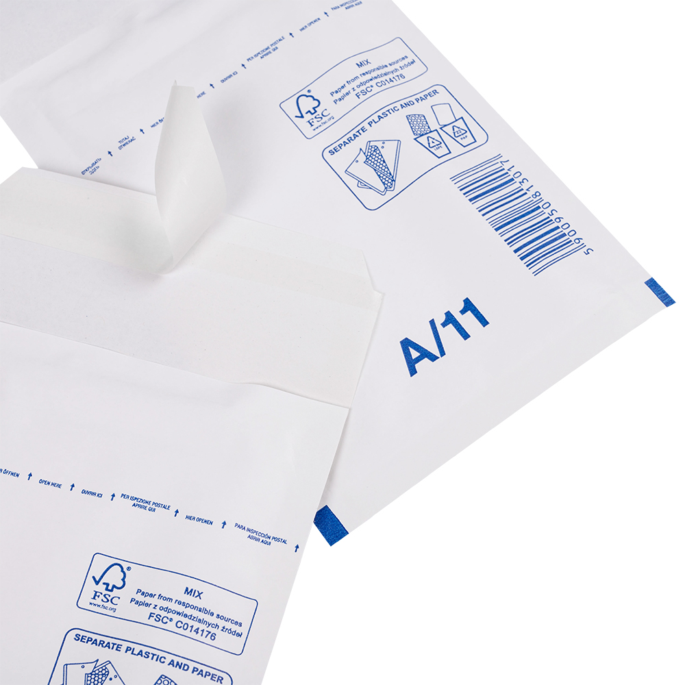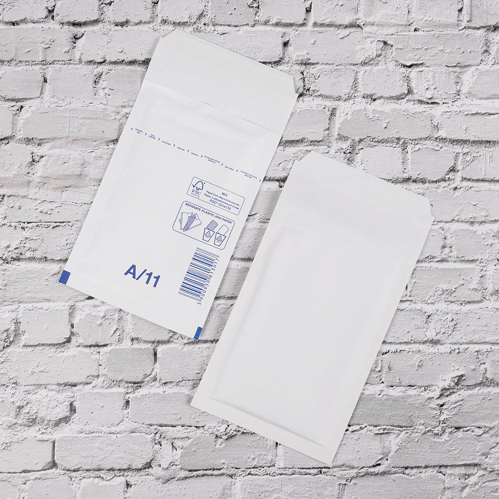 Белый крафт-пакет с воздушной прослойкой шириной 12 см и длиной 17 см. Внутренние размеры - 10*16 см. Изготовлен из крафт-бумаги и полиэтилена (внутренняя вставка). Производится в России.