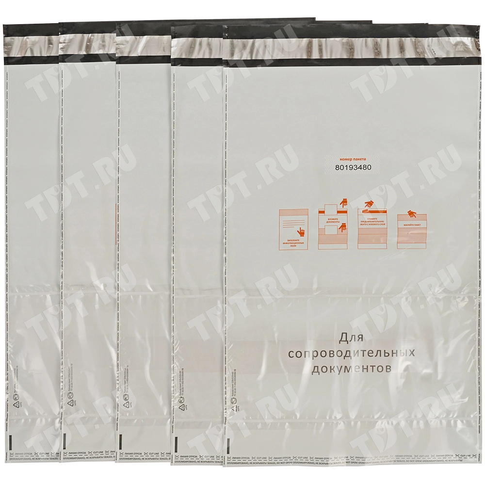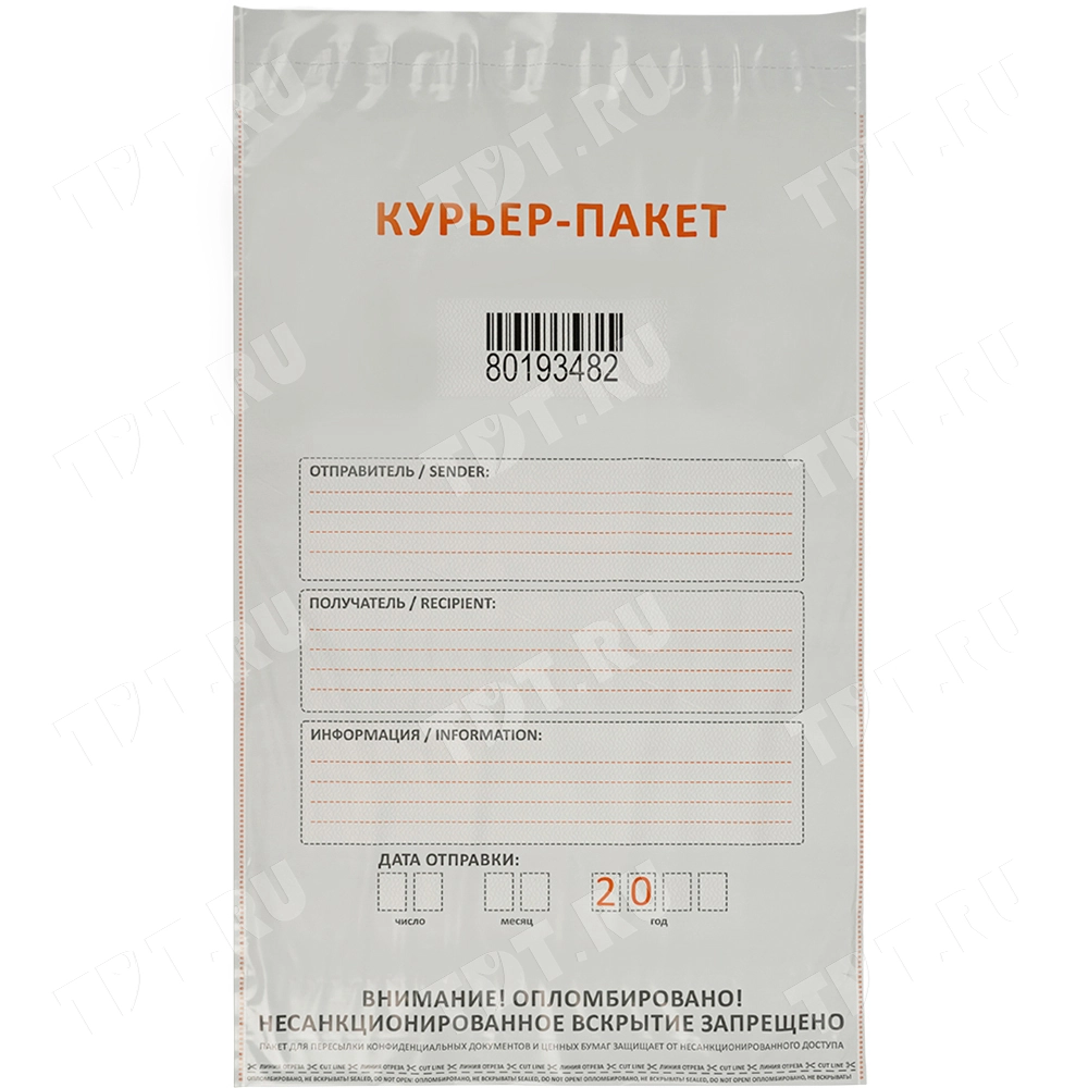 Курьер-пакет белый с печатью, с карманом, 328*510+50 мм, 60 мкм, 1 шт.