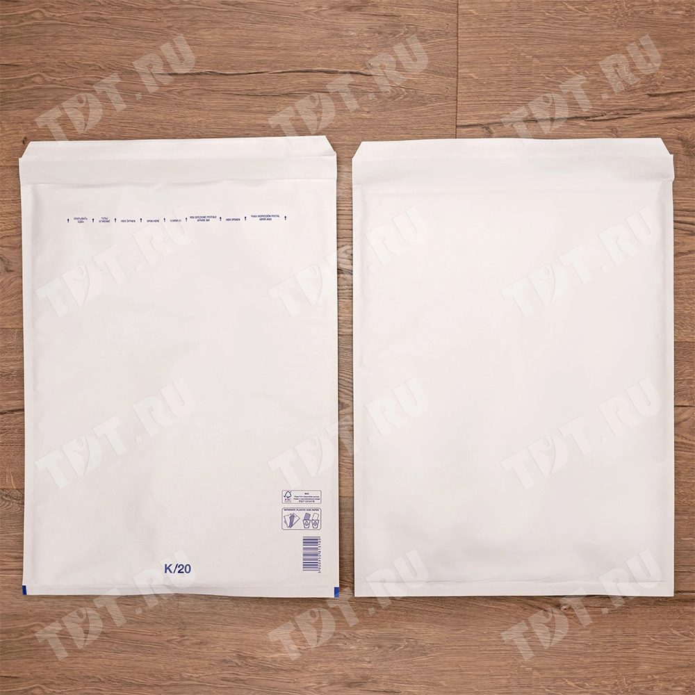 Белый крафт-пакет с воздушной прослойкой шириной 37 см и длиной 48 см. Внутренние размеры - 35*47 см. Изготовлен из крафт-бумаги и полиэтилена (внутренняя вставка). Производится в России.