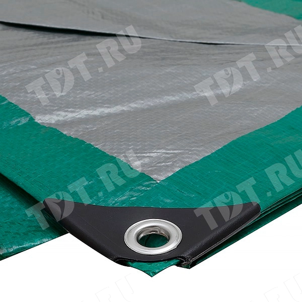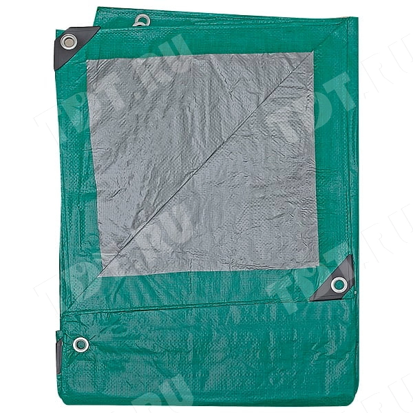 Зеленый универсальный защитный тент «Тарпаулин®» с люверсами большого размера из особо прочной полиэтиленовой ткани длиной 12 м, шириной 8 м, площадью 96 м², плотностью 120 г/м². Производится в России.