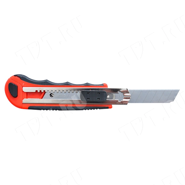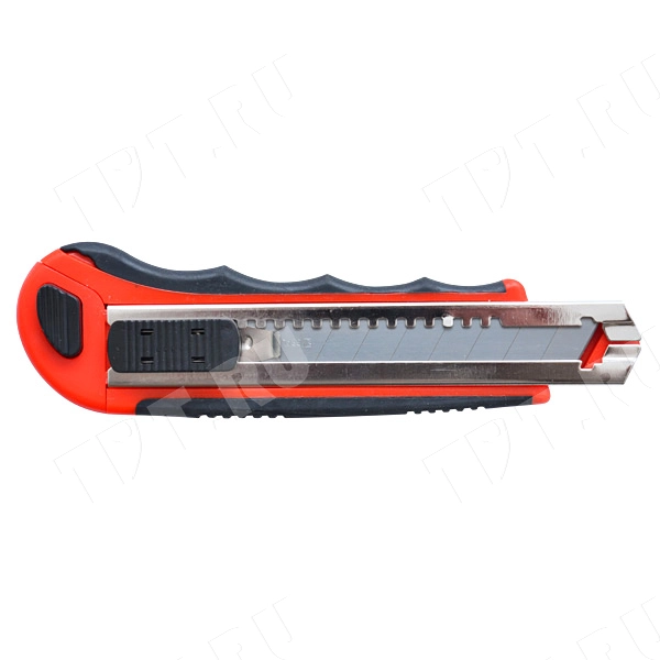 У этого канцелярского ножа пластиковый корпус со специальными резиновыми вставками, которые позволяют надежно фиксировать инструмент во время работы.