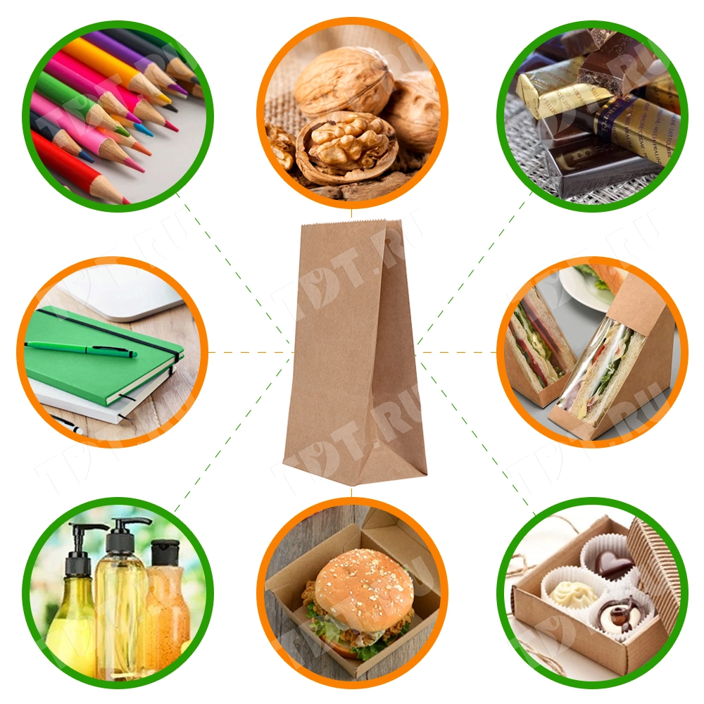 Пакеты без ручек используются для упаковки, переноски, хранения продуктов питания и бытовых товаров. Они незаменимы в пекарнях, кафе, ресторанах и на фудкортах.