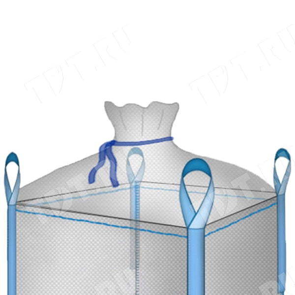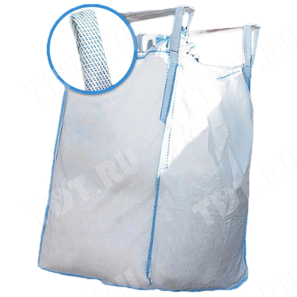 Четырехстропный биг-бэг мешок, глухой низ/верх сборка, длиной 95 см, шириной 95 см, высотой 100 см, грузоподъемностью 1200 кг, весом 1.191 кг. Материал – полипропилен. Производится в России.