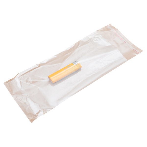 БОПП пакеты со скотчем, прозрачного цвета, длиной 27 см, шириной 12 см, толщиной 25 мкм, со стандартным клапаном 3 см, в упаковке по 100 штук. Материал – полипропилен. Производятся в России.
