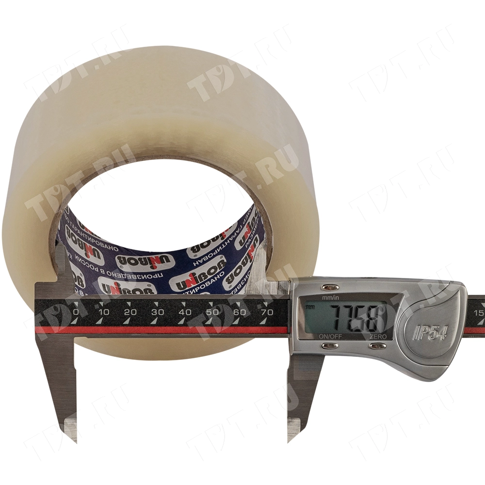 Диаметр втулки данной клейкой ленты - 76 мм, а ширина - 48 мм, поэтому она подойдёт для работы с диспенсером шириной 50 мм.