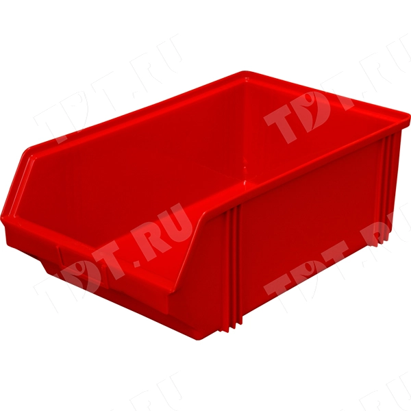 Пластиковый ящик красного цвета для хранения и транспортировки пищевой, фармакологической, автомобильной продукции, мелких деталей, медикаментов, инструментов и иных изделий, длиной 500 мм, шириной 310 мм, высотой 183 мм. Изготовлен из полиэтилена. Производится в России.