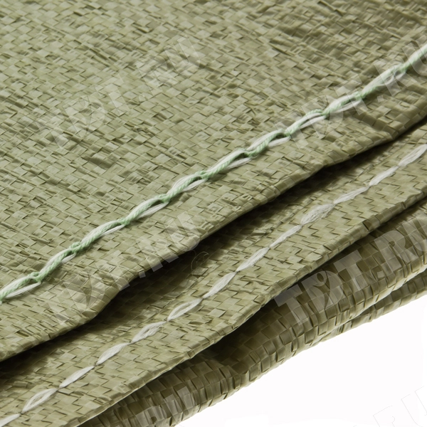 Полипропиленовый мешок, зеленого цвета, длиной 130 см, шириной 90 см, весом 90 г. Материал – полипропилен (ПП). Производится в России.