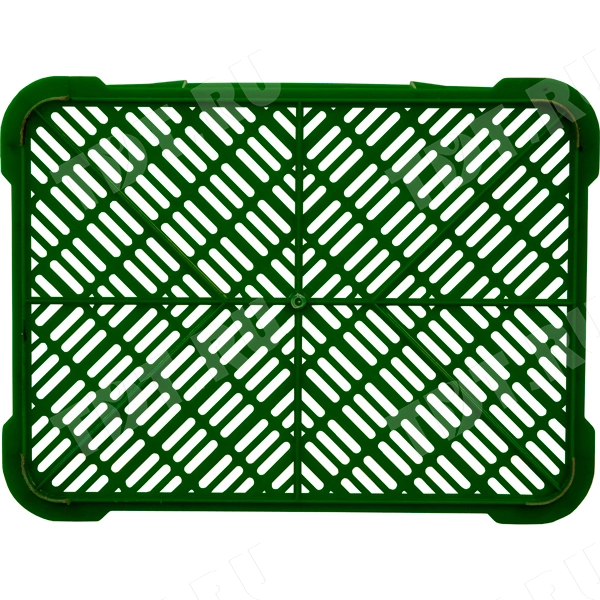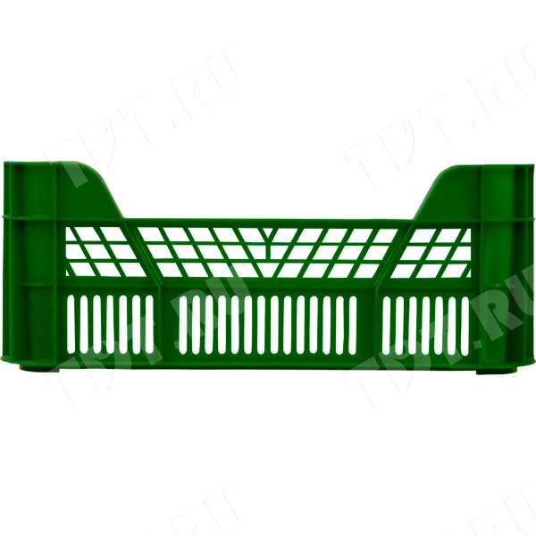 Пластиковый ящик зеленого цвета для хранения и транспортировки ягод, овощей, фруктов длиной 400 мм, шириной 300 мм, высотой 155 мм. Кратны размерам пластиковых поддонов: 800*600 мм, 1200*800 мм, 1200*1000 мм. Изготовлен из полиэтилена. Производится в России.
