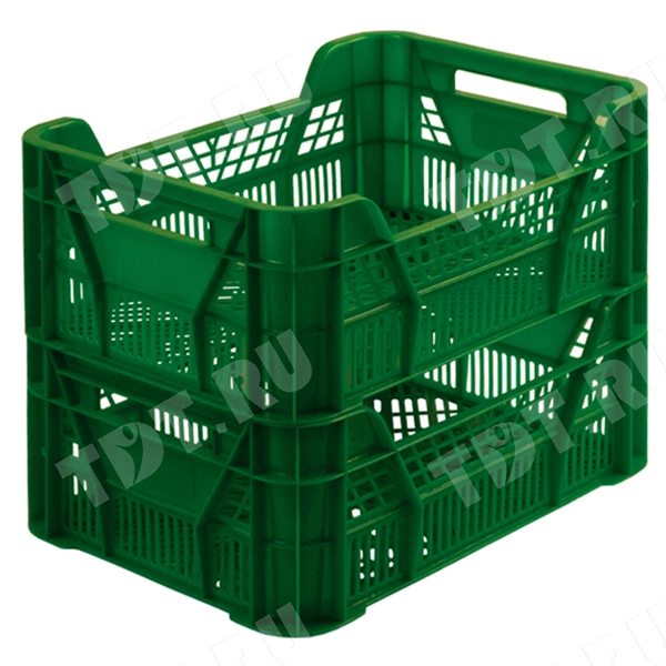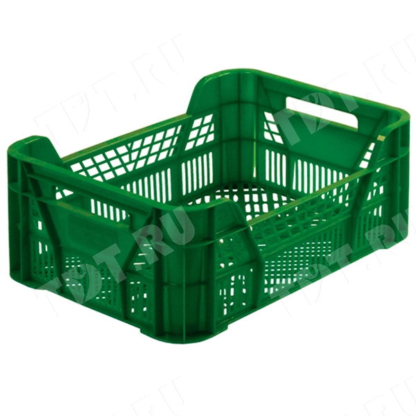 Область применения:Применяется для хранения и перевозки продукции. Перфорированные стенки и дно позволяют циркулировать воздуху, товару оставаться свежим. Выступы на дне помогают ровно штабелировать ящики друг на друга. Используются: на рынках, складах хранения, в магазинах и супермаркетах.