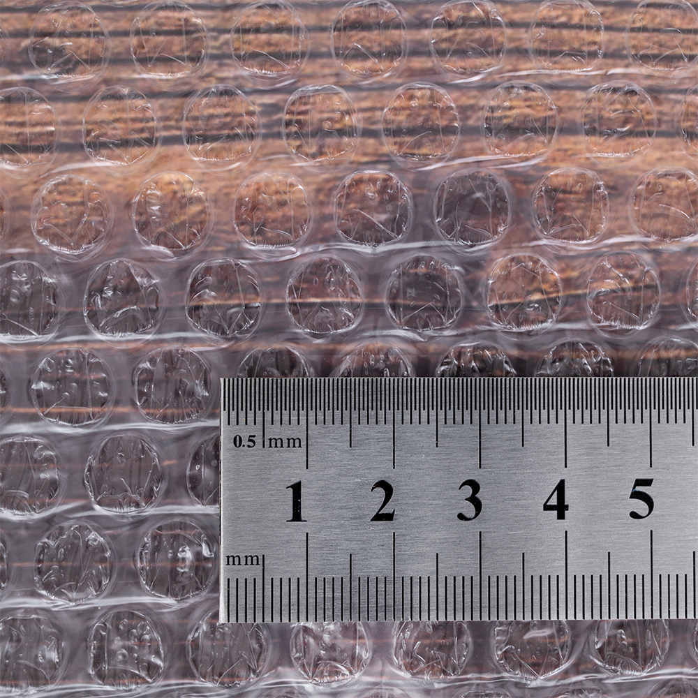 Листы из трехслойной воздушно-пузырчатой пленки, длиной 50 см, шириной 50 см, диаметром пузырька 10 мм, плотностью 60 г/м². Изготовлены из полиэтилена. Производятся в России.