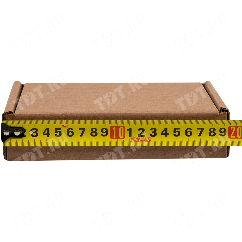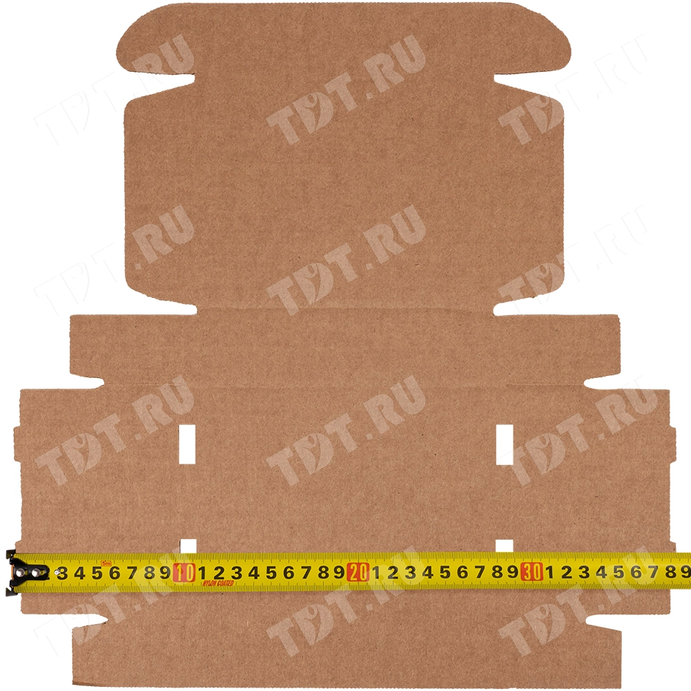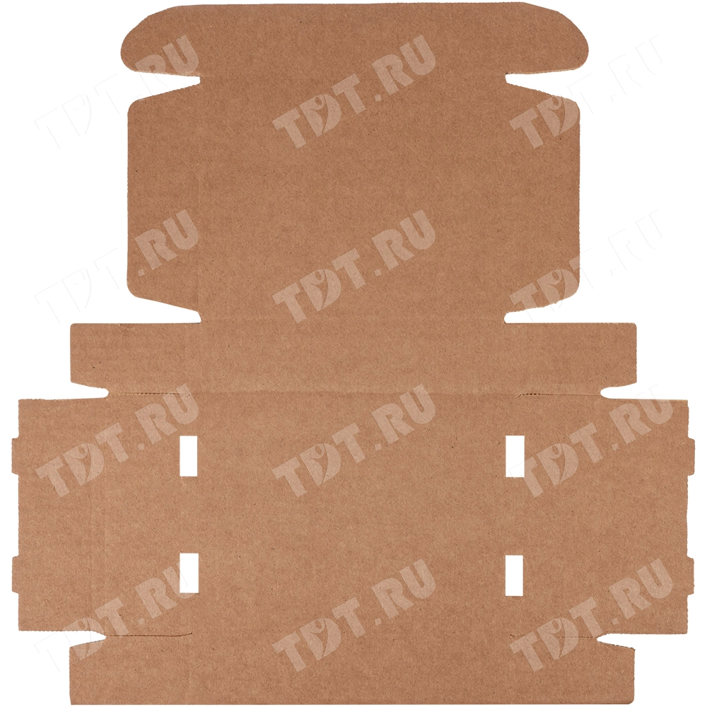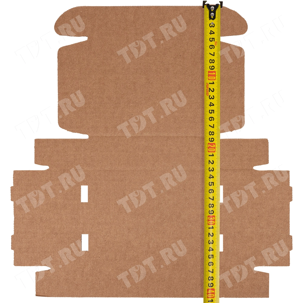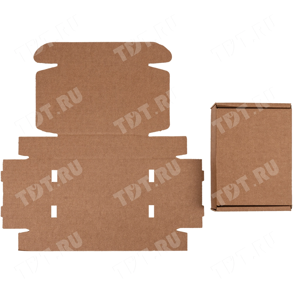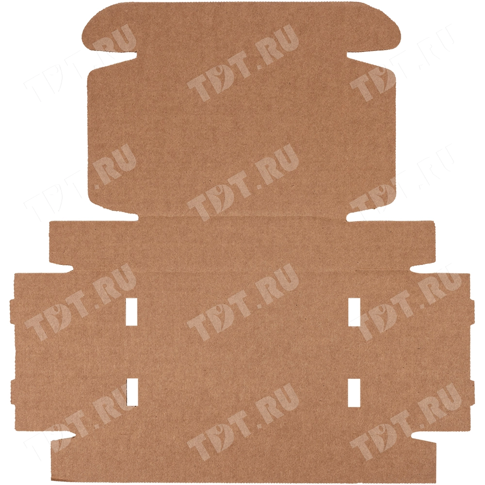 Короб №64/1 бурого цвета, длиной 170 мм, шириной 130 мм и высотой 40 мм. Изготовлен из гофрокартона Т-23 В (целлюлоза). Полезный объём — 0.9 л.