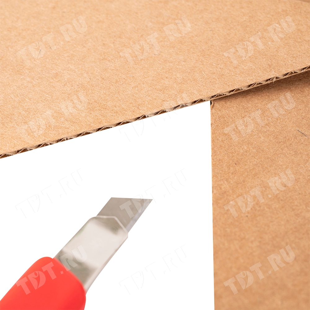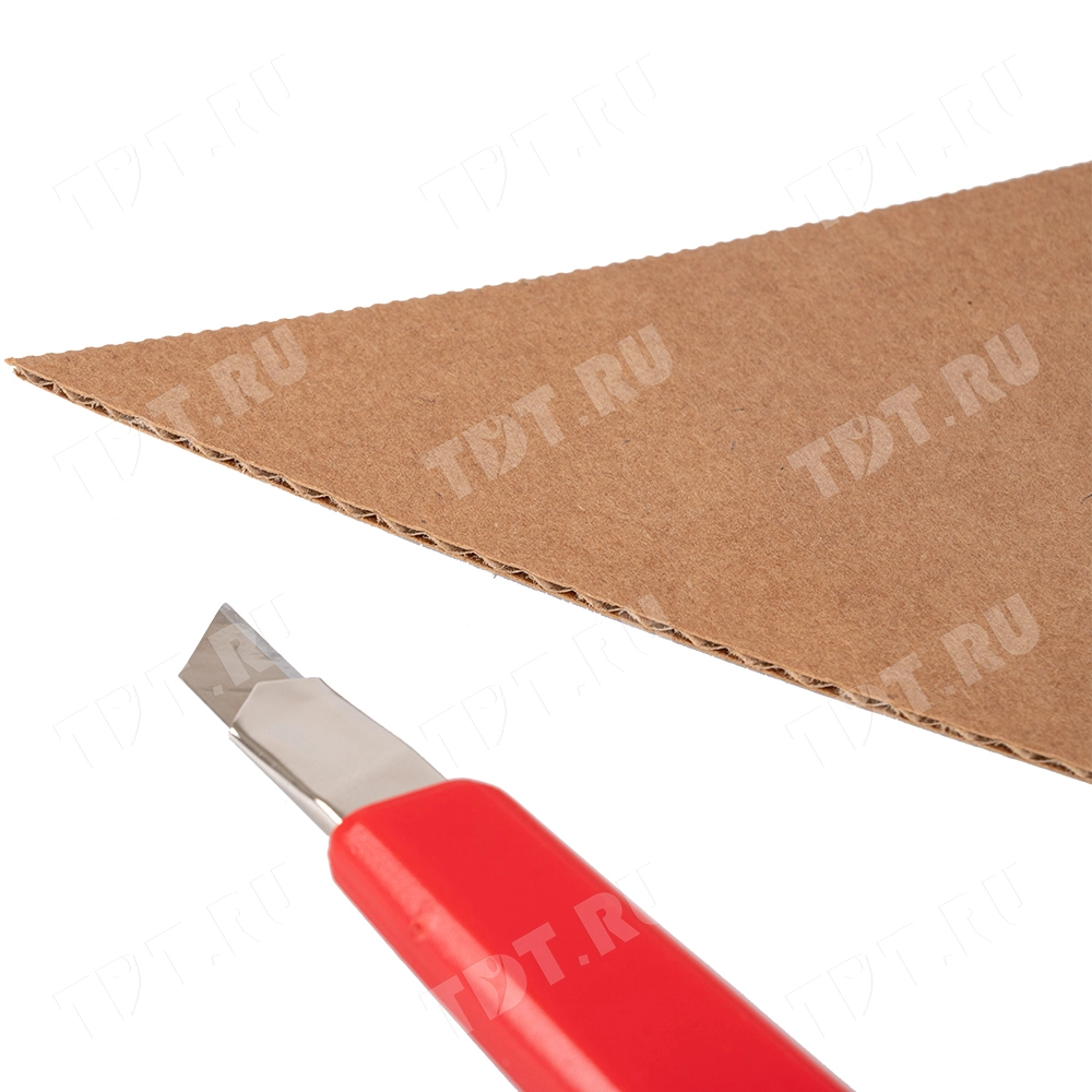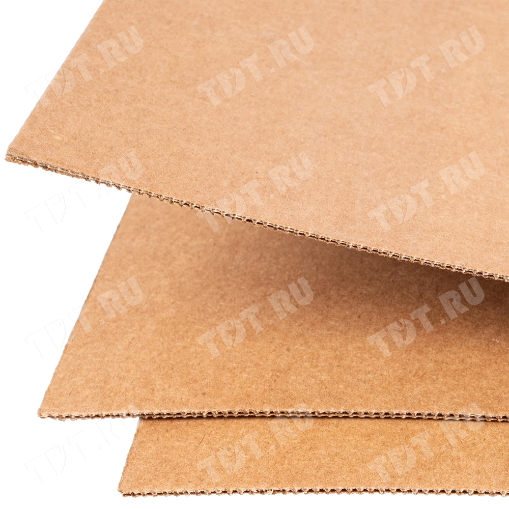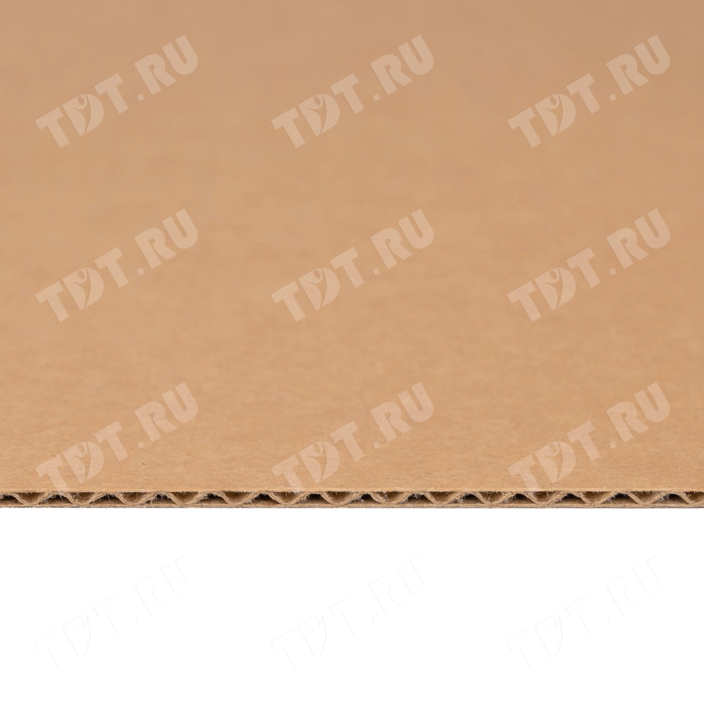 Трехслойный лист микрогофрокартона, бурого цвета, марки T-11 Е, длиной 1200 мм, шириной 800 мм, толщиной 1.4-1.8 мм, площадью 0.96 м², направление волны вдоль стороны 1200 мм. Для производства листов используется только первичное высококачественное сырье. Производится в России.