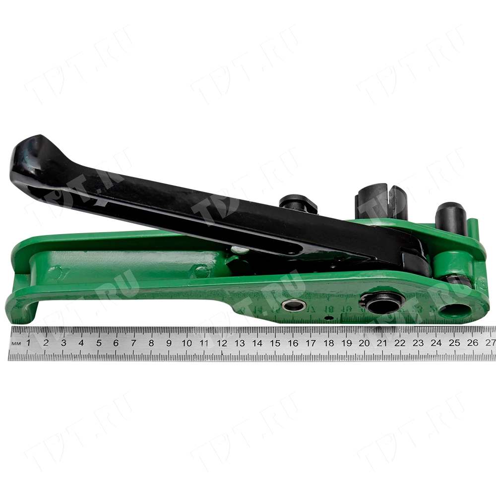 Область применения:Инструмент предназначен для натяжения и отрезания упаковочной стреппинг ленты. Натяжение происходит путем перемещения рычага натяжителя вперед-назад. Чтобы отрезать ленту необходимо нажать на рычаг до упора.