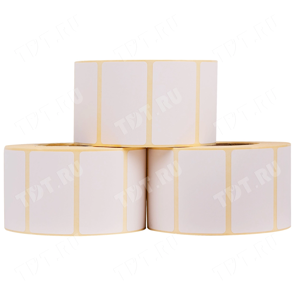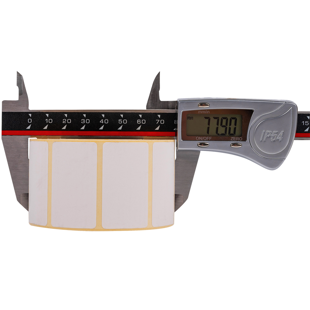 Самоклеящиеся этикетки ЭКО из матовой бумаги белого цвета, шириной 43 мм, высотой 25 мм, диаметром втулки 40 мм, количеством в рулоне по 1000 штук. Производятся в России. Термоэтикетки ЭКО в рулонах предназначены для печати на принтерах без риббона. На этикетках есть специальный слой, который при нагреве термоголовки принтера темнеет, за счет этого происходит печать.