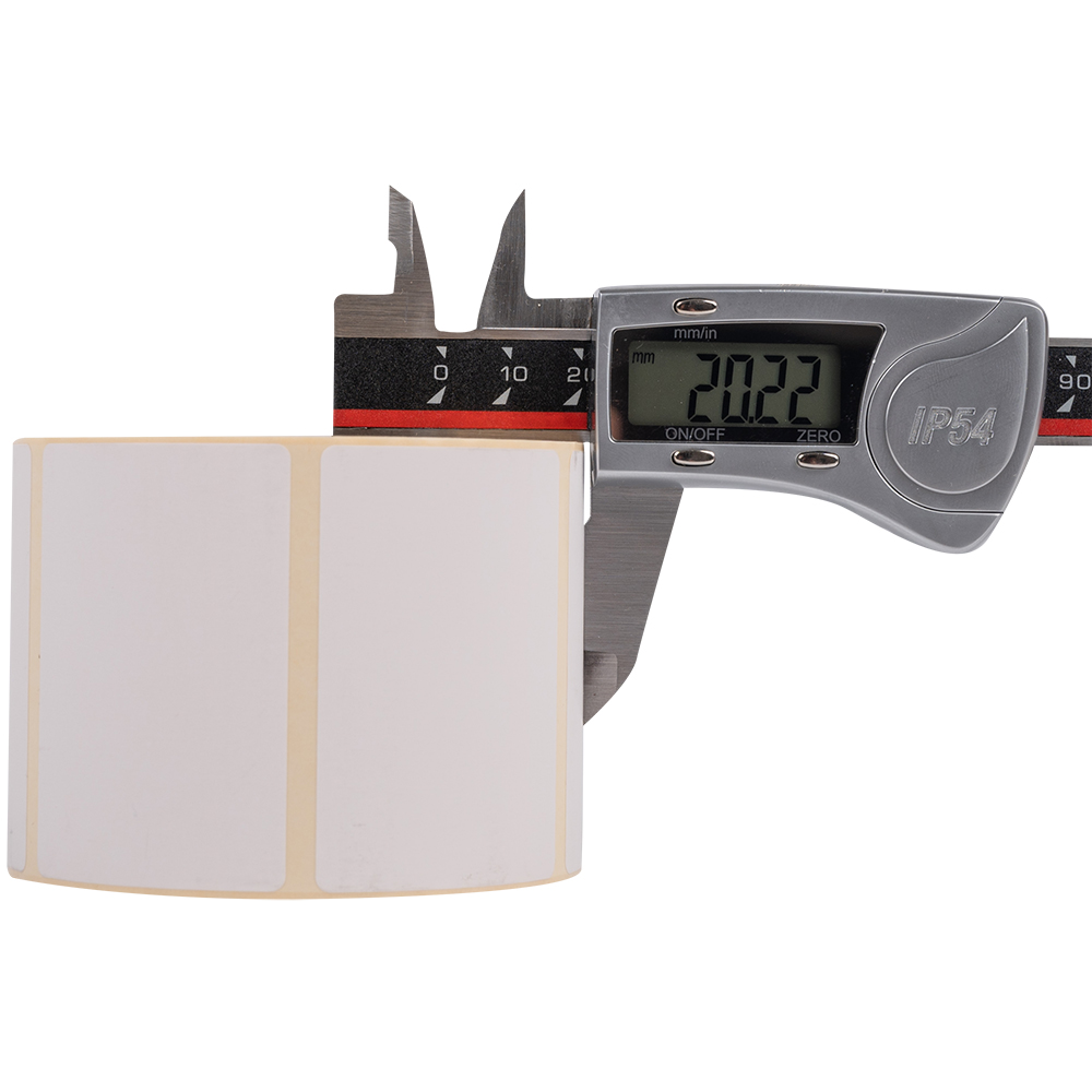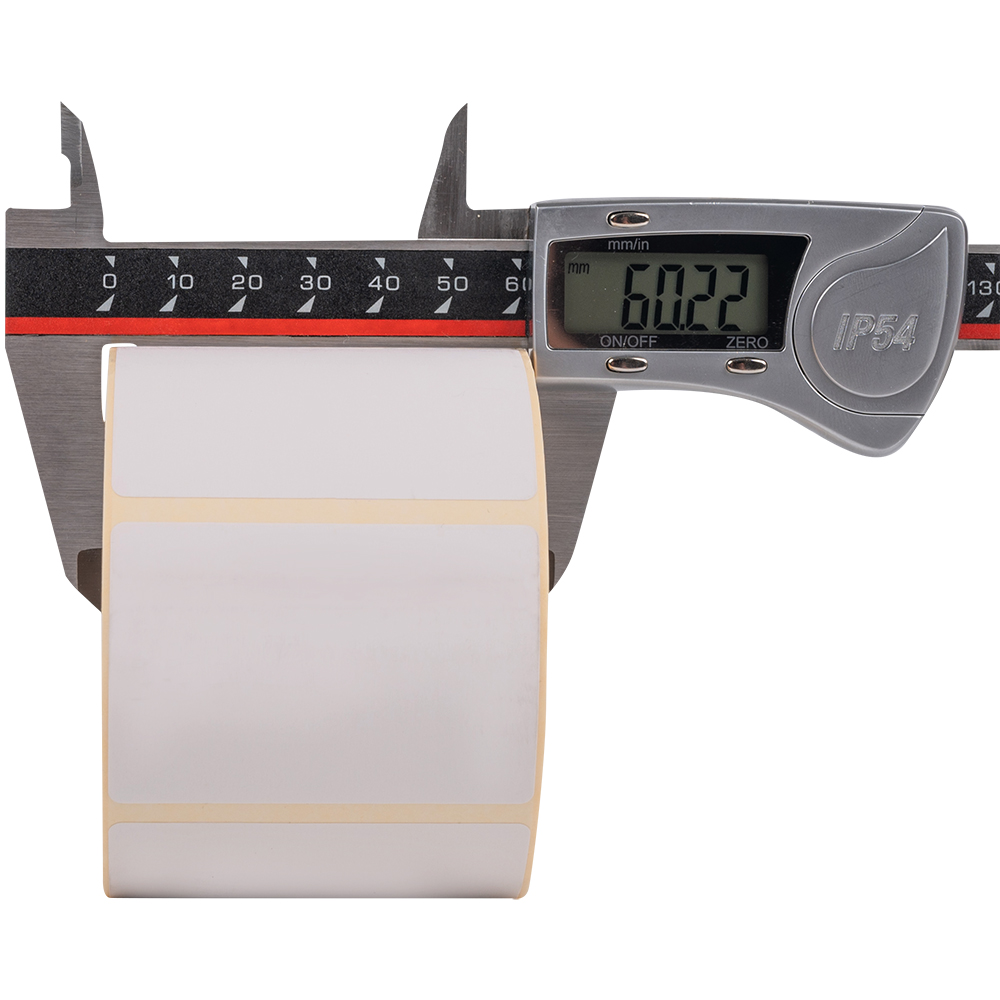 Самоклеящиеся этикетки ЭКО из матовой бумаги белого цвета, шириной 58 мм, высотой 40 мм, диаметром втулки 40 мм, количеством в рулоне по 700 штук. Производятся в России. Термоэтикетки ЭКО в рулонах предназначены для печати на принтерах без риббона. На этикетках есть специальный слой, который при нагреве термоголовки принтера темнеет, за счет этого происходит печать.