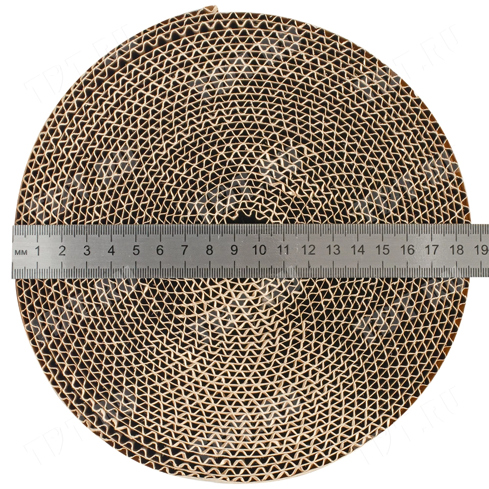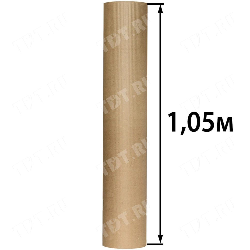 Рулонный гофрокартон бурого цвета, намоткой 10 м, шириной 1.05 м, толщиной 2.8-3.0 мм, площадью 10.5 м². Производится в России.