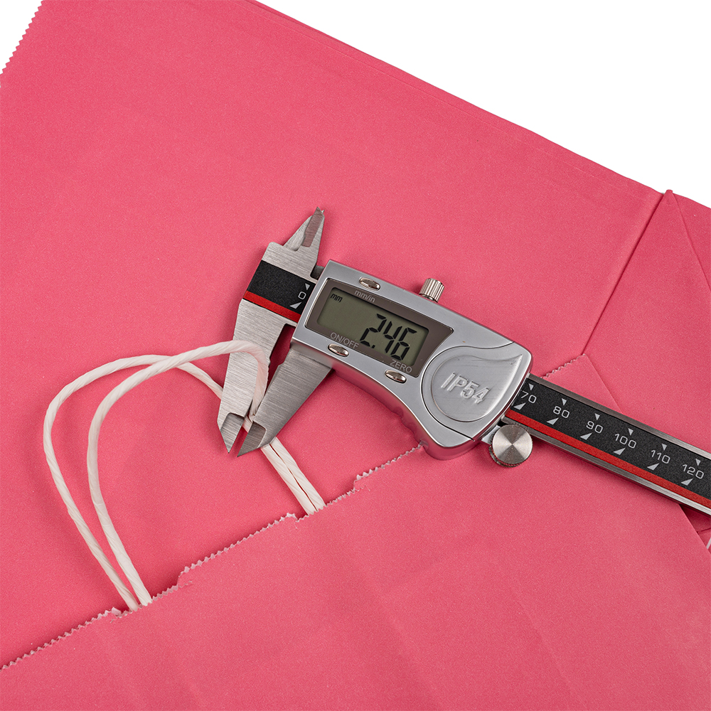 Ручки изготовлены в виде бумажного шпагата путем скручивания и надежным способом закреплены с внутренней стороны, что усиливает прочность, износостойкость и придает пакету эстетичный вид.
