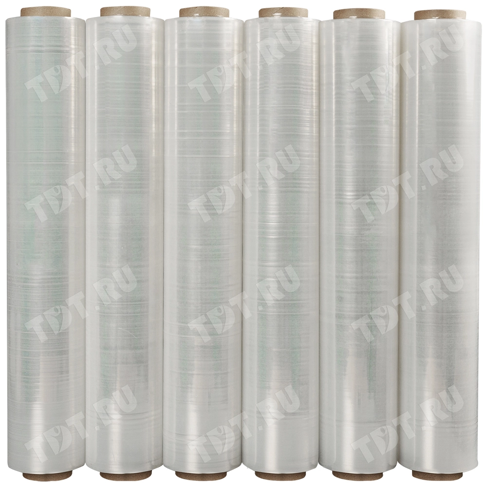 Прозрачная паллетная стрейч пленка, первого сорта, намоткой 217 м, шириной 500 мм, толщиной 20 мкм. Изготовлена из первичных гранул LLDPE. Производится в России.