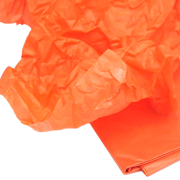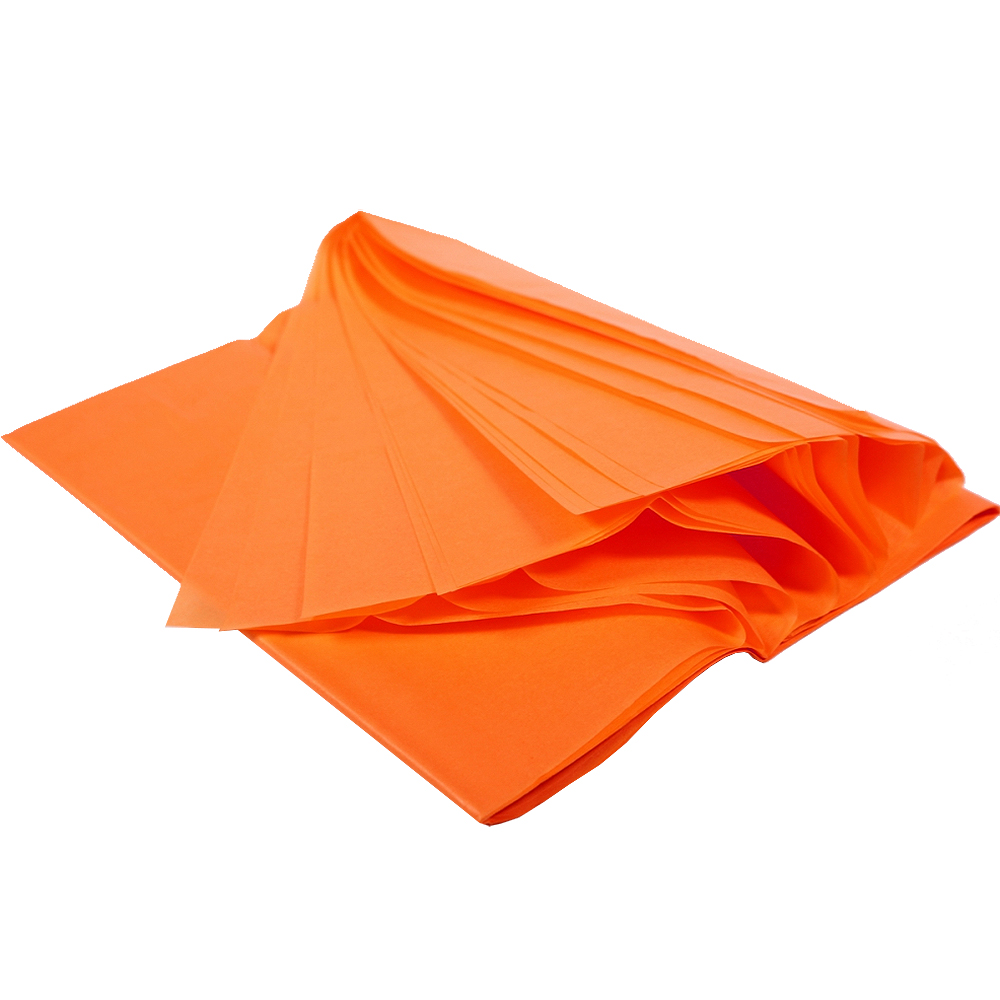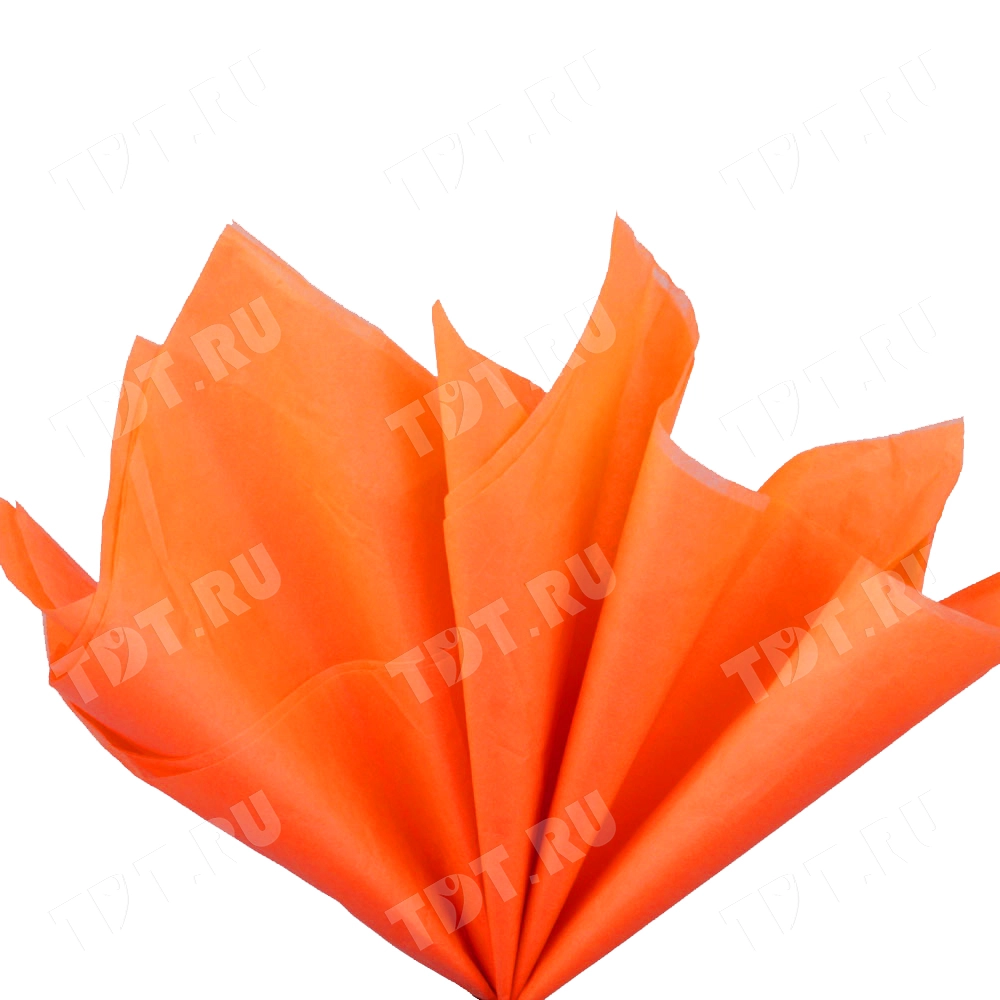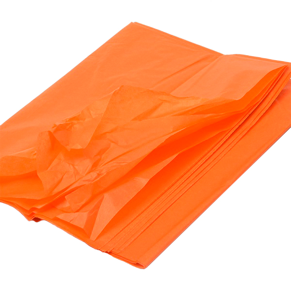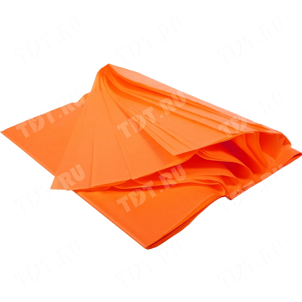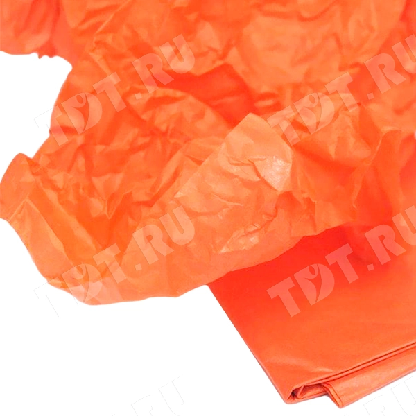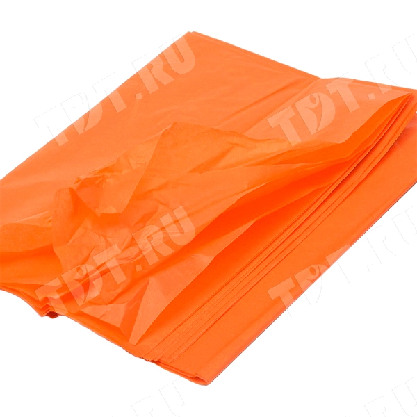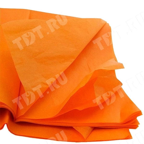 Оранжевая бумага тишью шириной 50 см, длиной 66 см, плотностью 20 г/м² по 10 листов в упаковке. Шероховатая упаковочная бумага для оформления и украшения подарков.