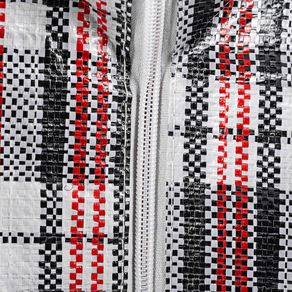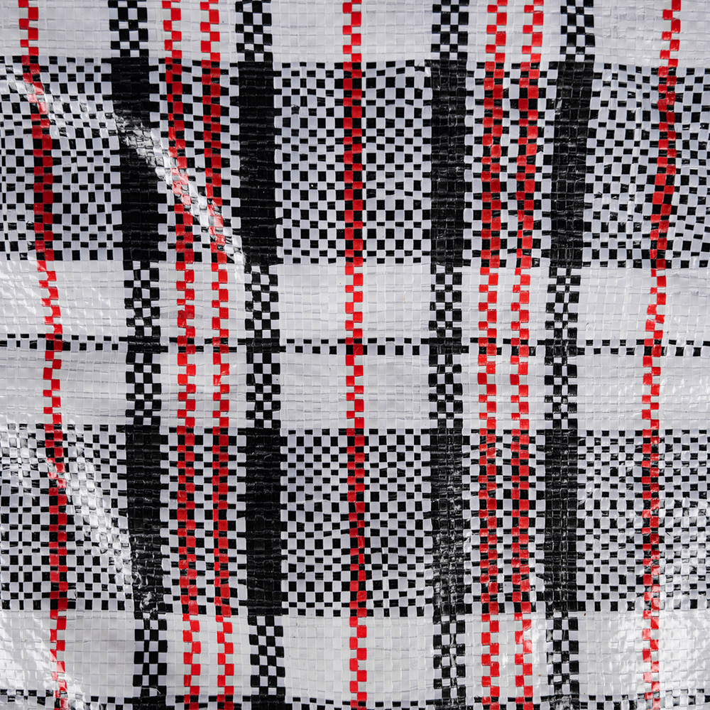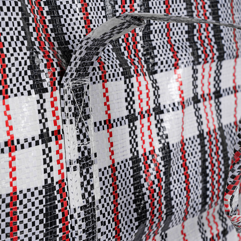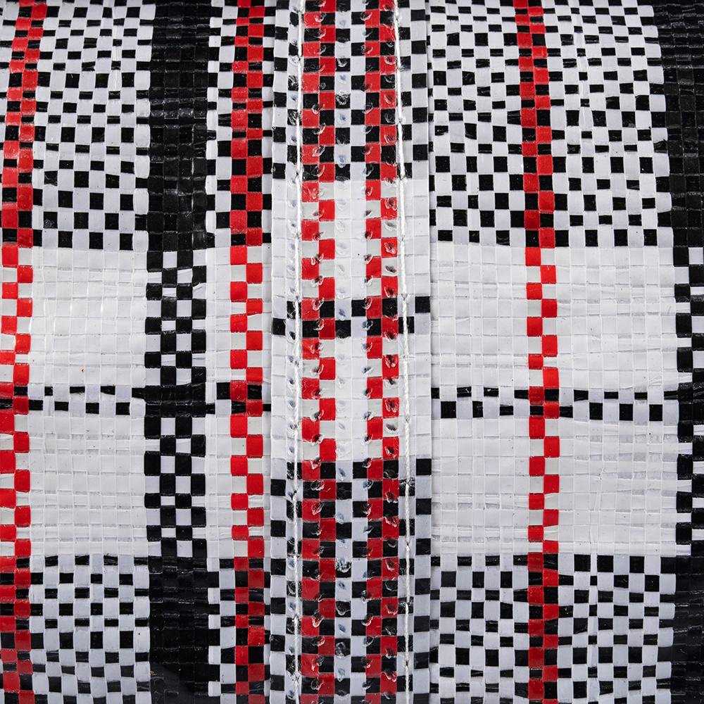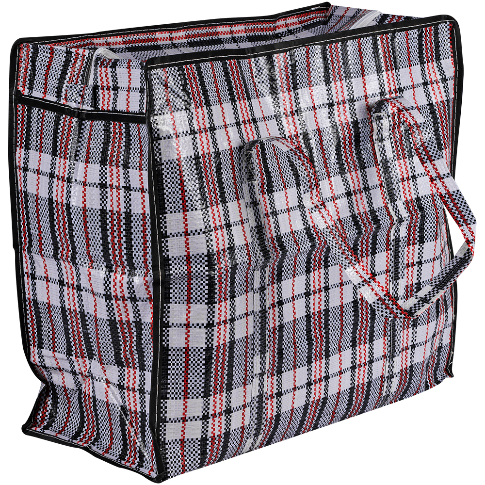 Сумка-баул однослойная хозяйственная длиной 60 см, шириной 25 см, высотой 45 см, объемом 68 л, чёрно-красная. Материал полипропилен. Имеет прострочку по периметру. Занимает мало места в сложенном виде. Производится в Китае.