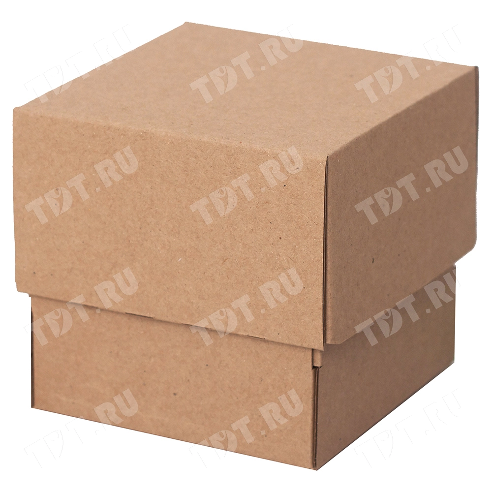 Коробка крышка-дно «Кубик» бурого цвета, серия КС-600, длиной 100 мм, шириной 100 мм и высотой 100 мм. Изготовлена из микрогофрокартона Т-23 Е. Полезный объём — 1 л.
