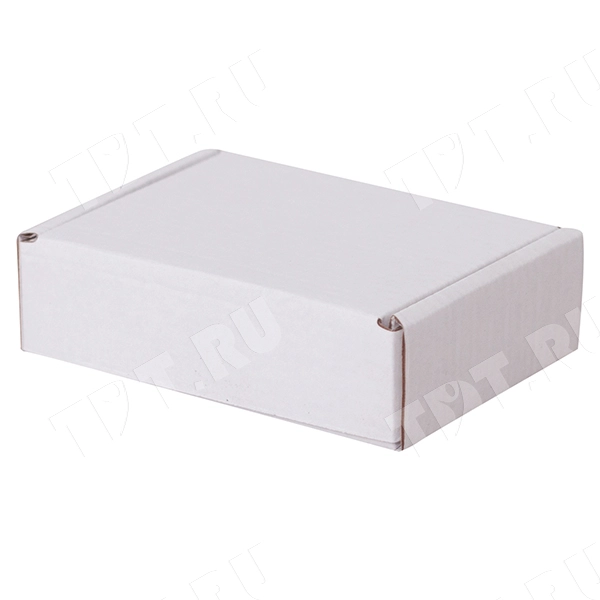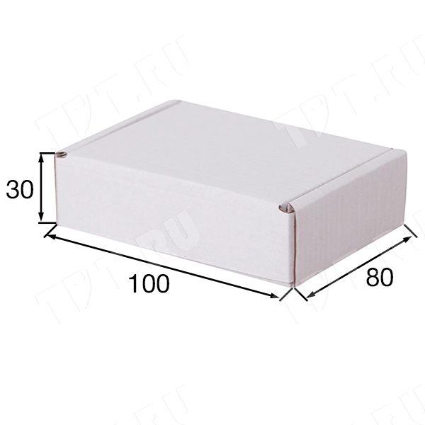 Короб КС-404 МГФ, серии КС-400, белый, длиной 100 мм, шириной 80 мм и высотой 30 мм. Изготовлен из микрогофрокартона Т-23. Полезный объём — 0.2 л.