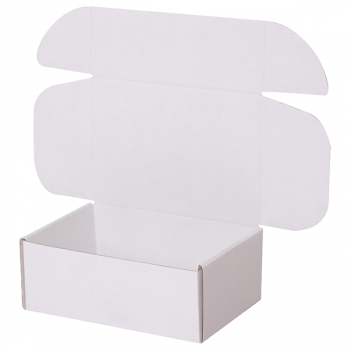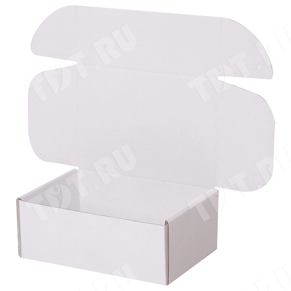 Короб КС-405 МГФ, серии КС-400, белый, длиной 195 мм, шириной 135 мм и высотой 75 мм. Изготовлен из микрогофрокартона Т-23. Полезный объём — 1.95 л.