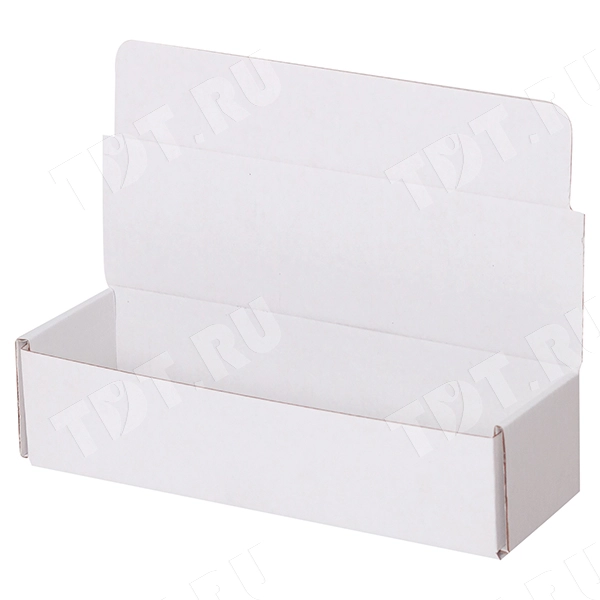 Короб КС-409 МГФ, серии КС-400, белый, длиной 200 мм, шириной 60 мм и высотой 50 мм. Изготовлен из микрогофрокартона Т-23. Полезный объём — 0.6 л.