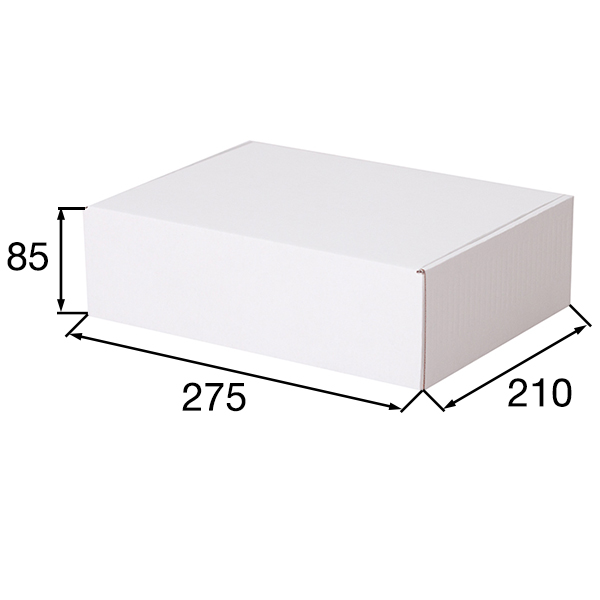 Короб КС-431 МГФ, серии КС-400, белый, длиной 275 мм, шириной 210 мм и высотой 85 мм. Изготовлен из микрогофрокартона Т-23. Полезный объём — 4.9 л.