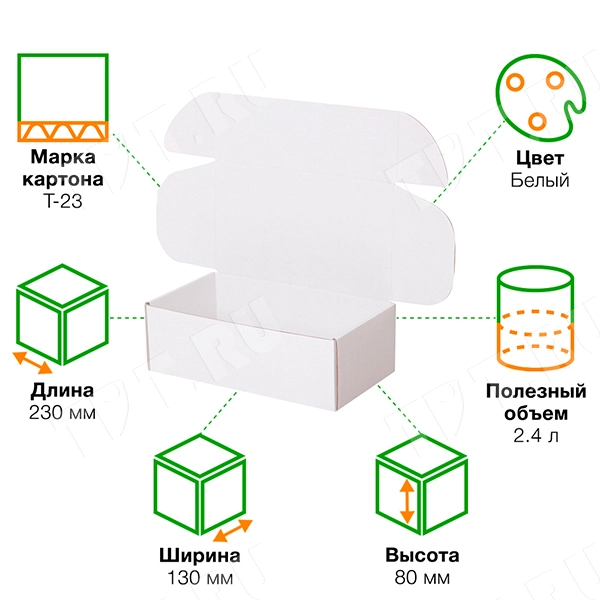 У всех картонных коробок на сайте указаны внутренние размеры.