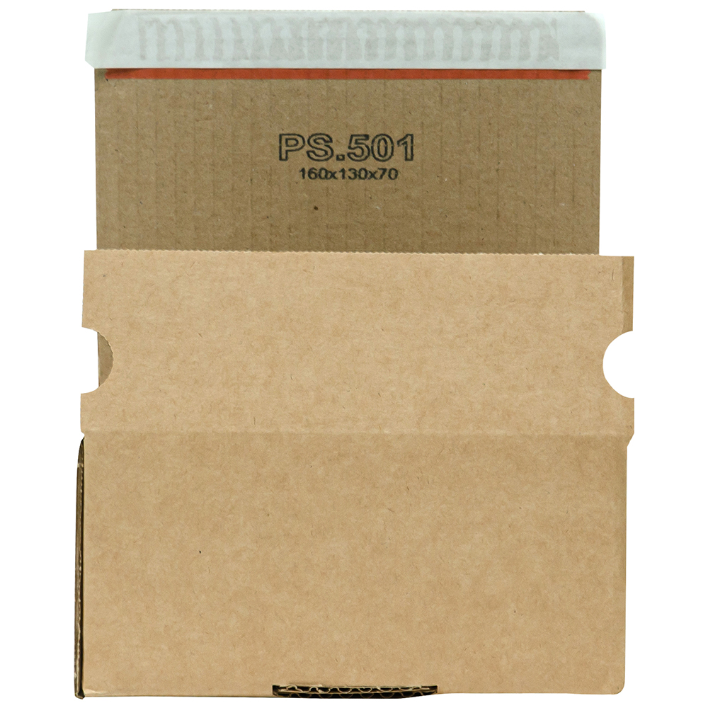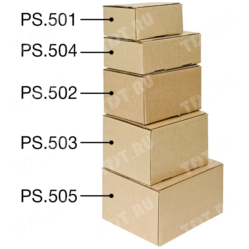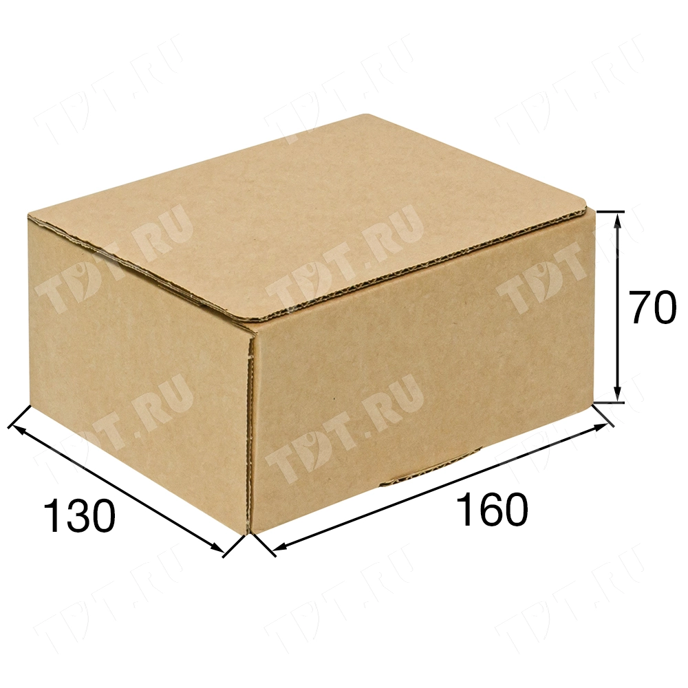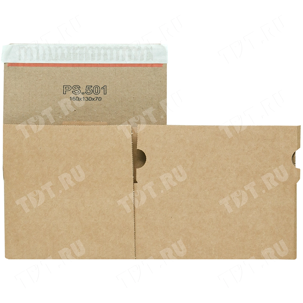 Почтовый короб PS.501 с клеевым клапаном, бурого цвета, длиной 160 мм, шириной 130 мм и высотой 70 мм. Изготовлен из трёхслойного гофрокартона Т-23 В. Полезный объём — 1.46 л.