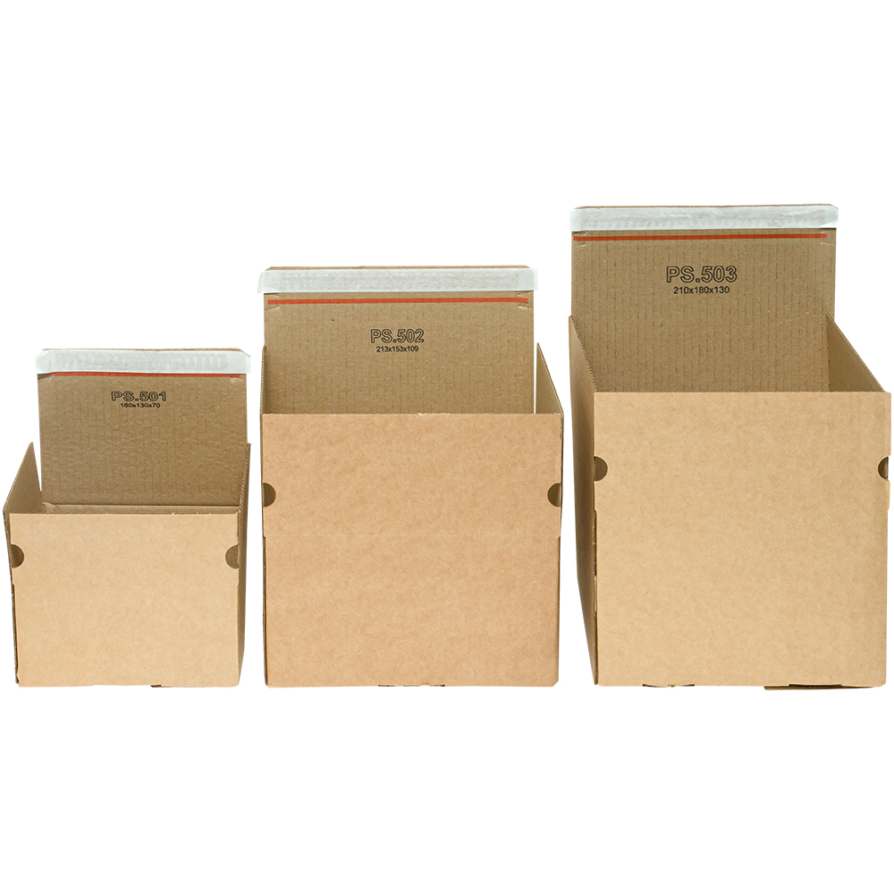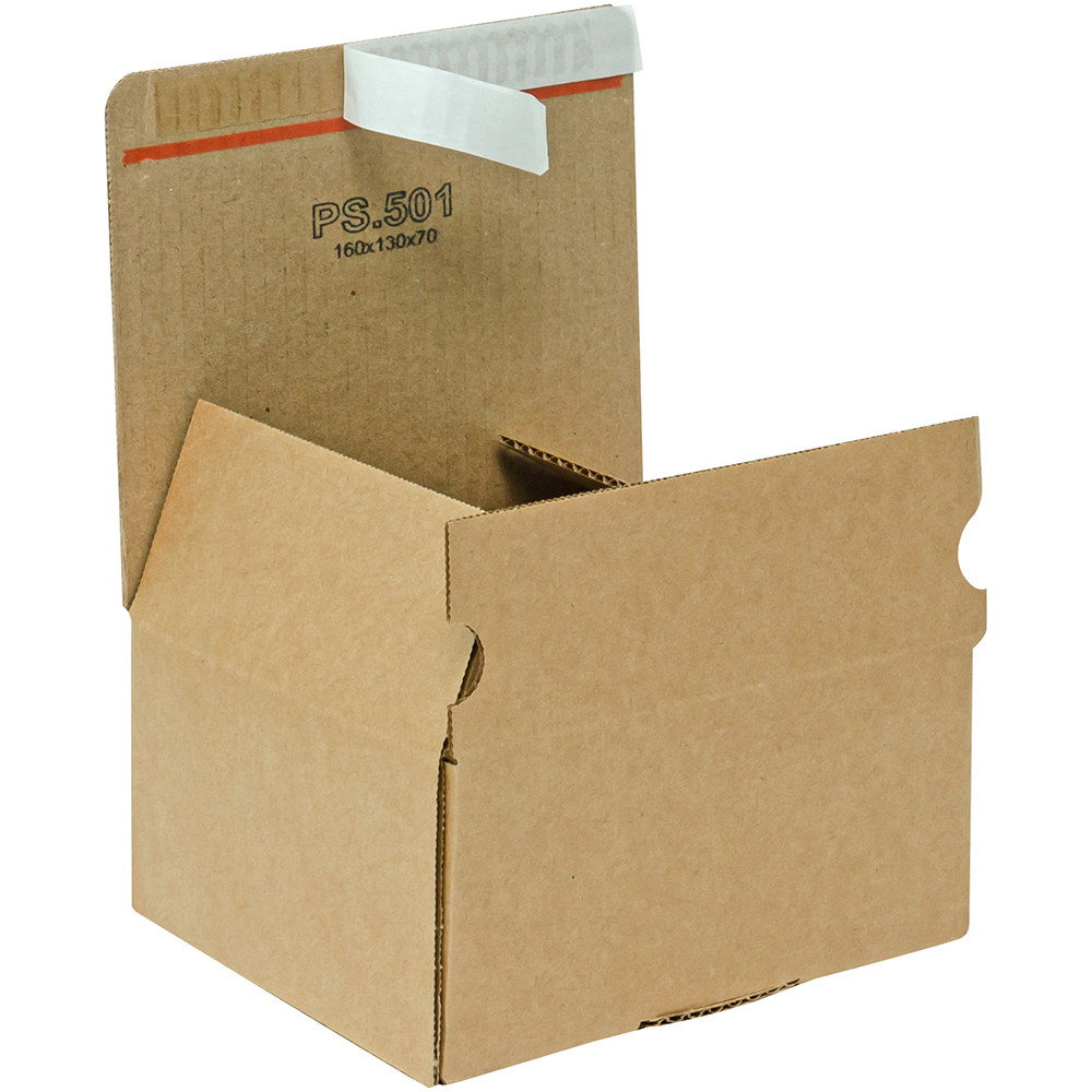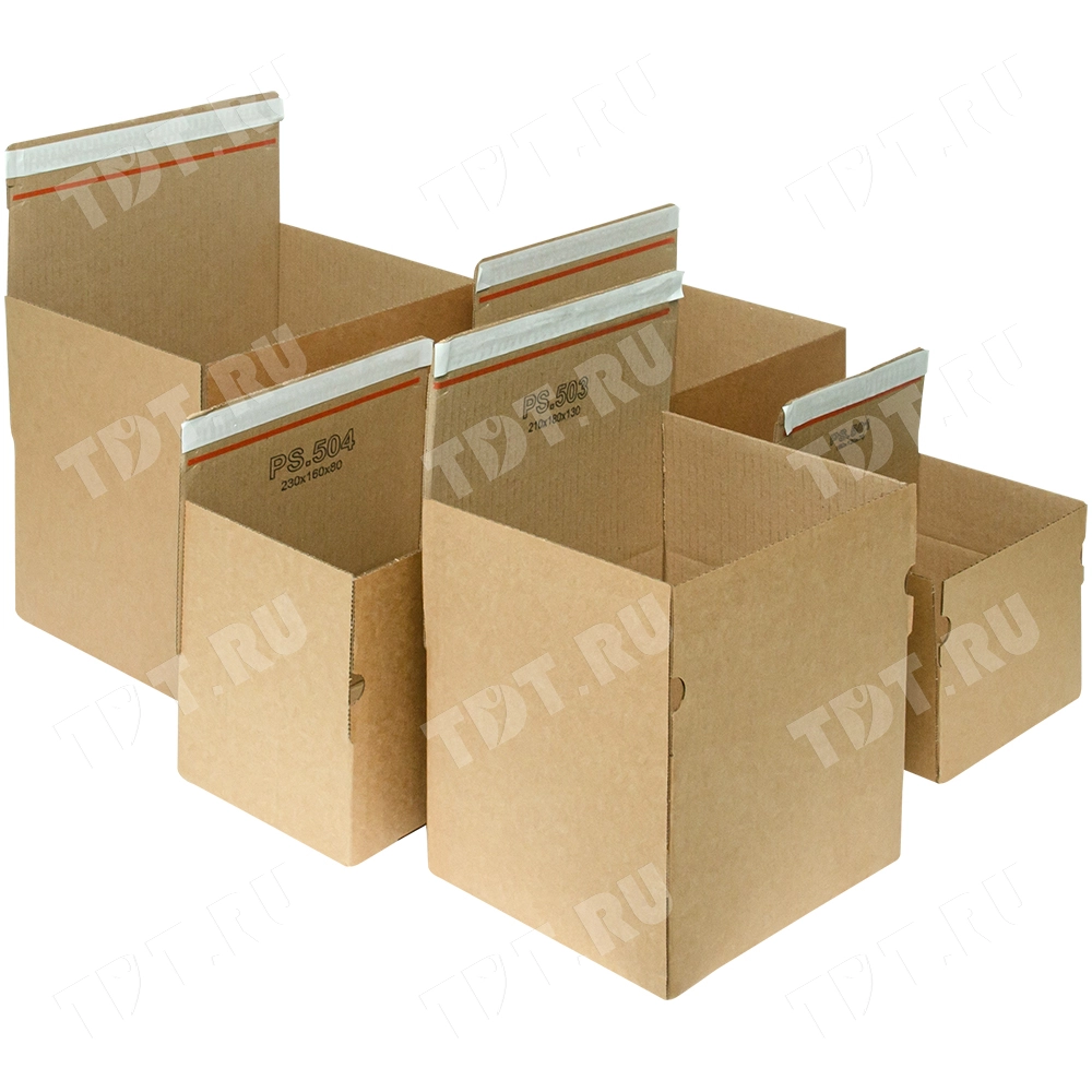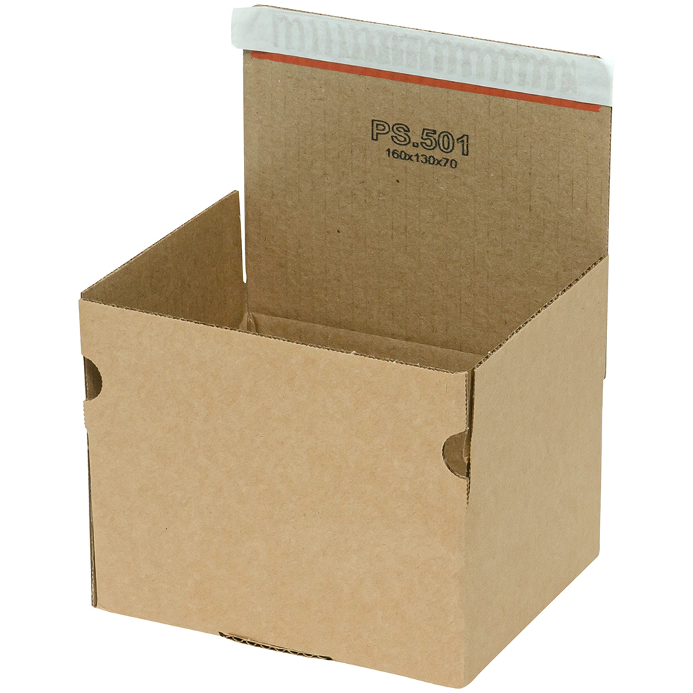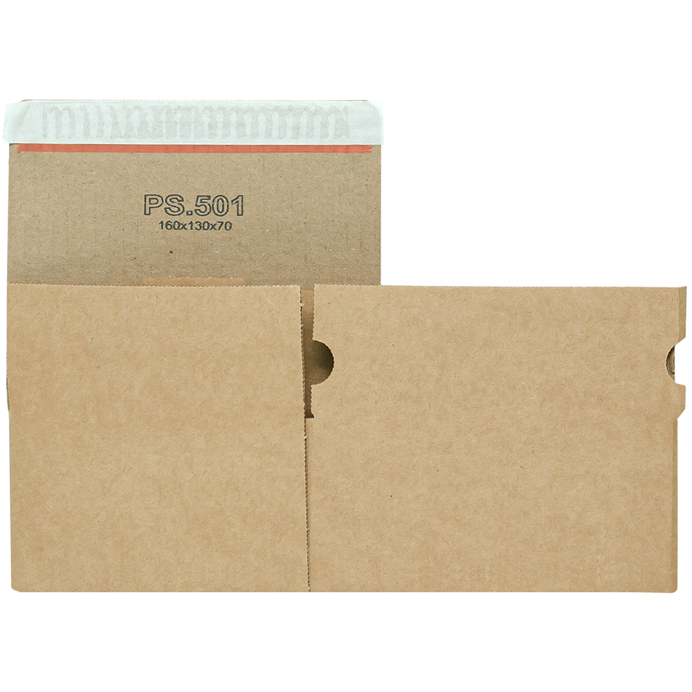 Почтовый короб PS.501 с клеевым клапаном, бурого цвета, длиной 160 мм, шириной 130 мм и высотой 70 мм. Изготовлен из трёхслойного гофрокартона Т-23 В. Полезный объём — 1.46 л.