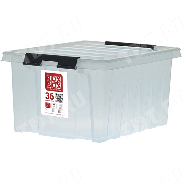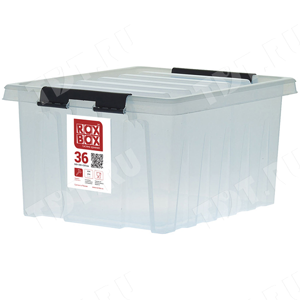 Прозрачный пластиковый ящик для хранения и транспортировки вещей длиной 500 мм, шириной 390 мм, высотой 250 мм. Изготовлен из полипропилена. Производится в России.