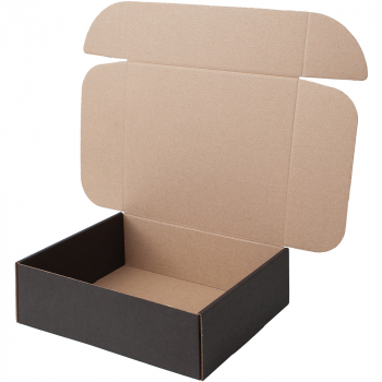 Короб КС-530 МГФ, серии КС-500, чёрный, длиной 235 мм, шириной 200 мм и высотой 75 мм. Изготовлен из картона марки Т-24 Е. Полезный объём — 3.5 л.