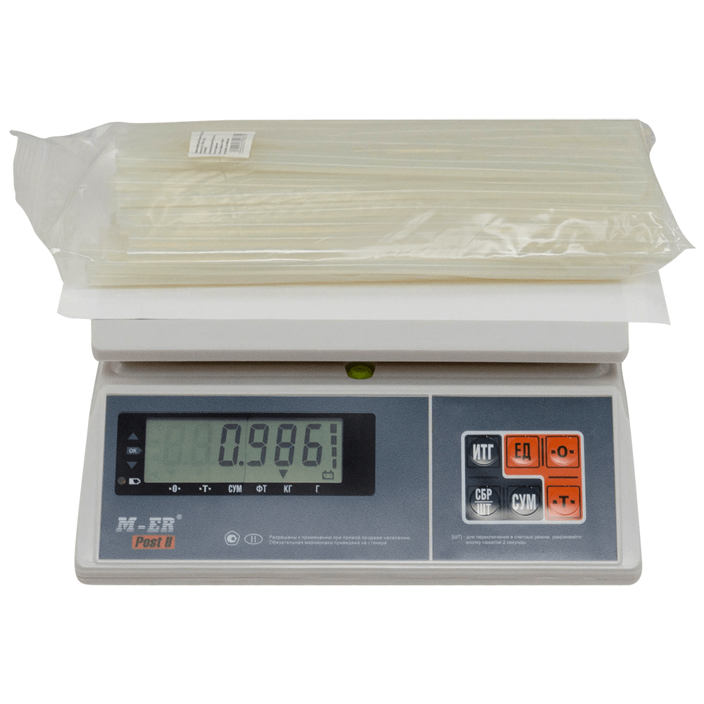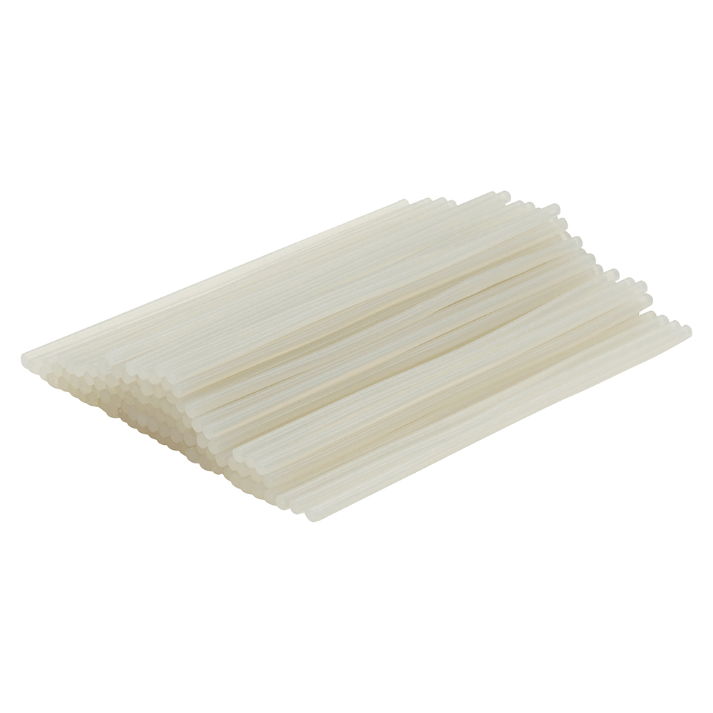 Стержни для клеевых пистолетов горячего плавления, прозрачного цвета, длиной 265 мм, диаметром 7 мм, весом 1 кг, в упаковке по ≈100 штук. Производятся в России.