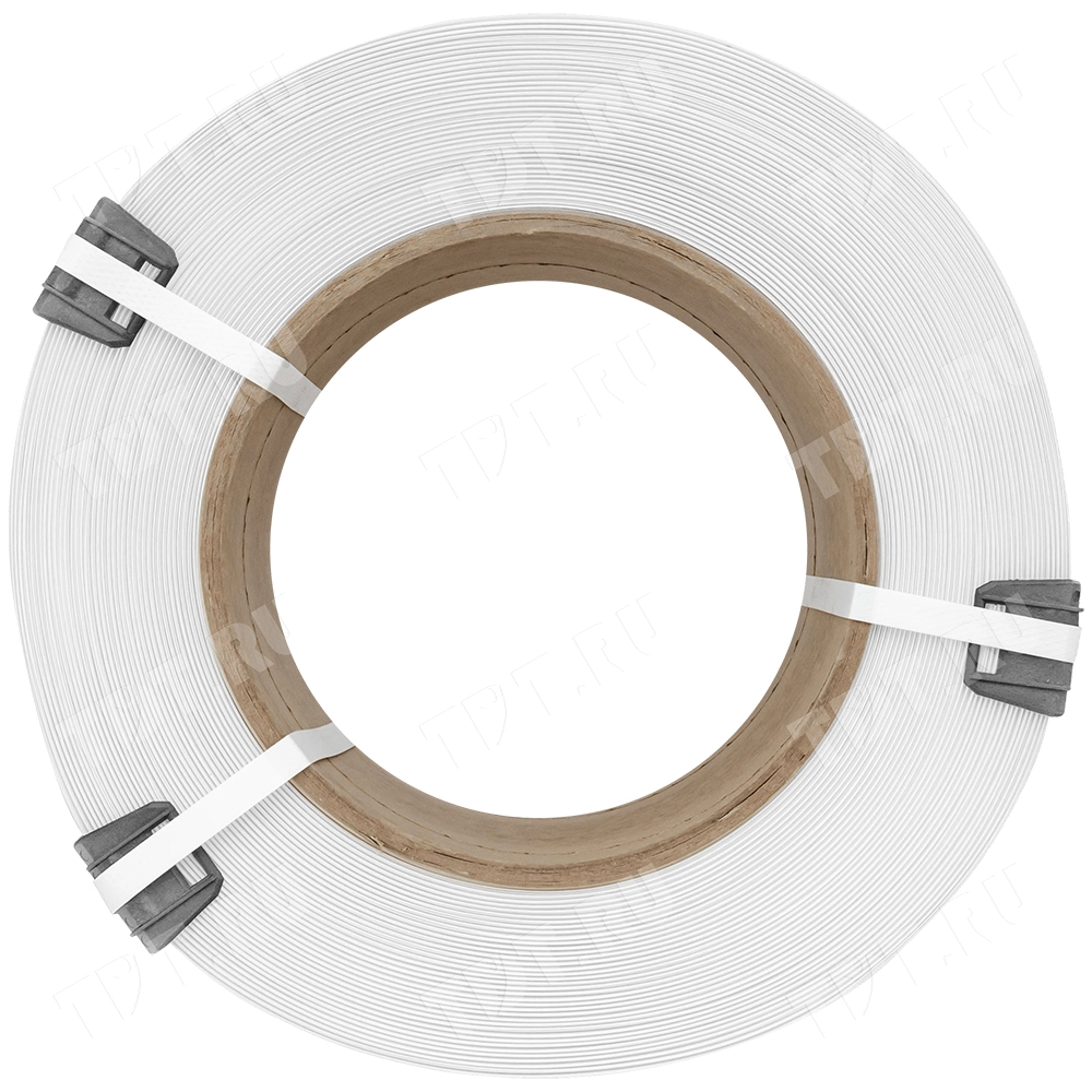 Упаковочная полипропиленовая лента (ПП) Лентапром, белого цвета, намоткой 2000 м, шириной 12 мм, толщиной 0,5 мм, усилием на разрыв 120 кГс, весом 7.482 кг, транспортировочным объемом 0.020808 м³. Диапазон рабочих температур от -30 до +60°C. Производится в России.