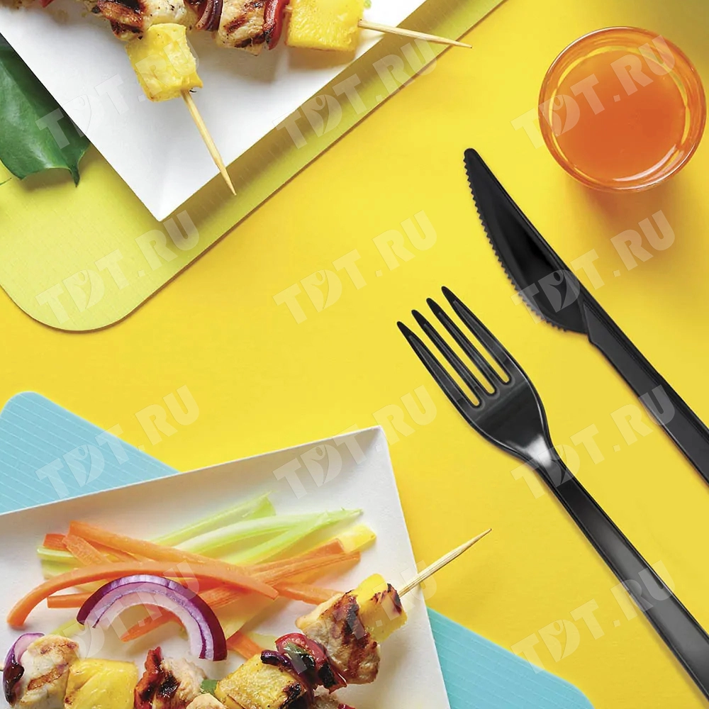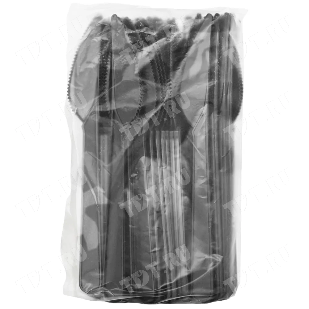 Одноразовые пластиковые ножи Премиум с зубчиками, черного цвета, длиной 180 мм, в упаковке по 50 шт. Материал – пищевой полистирол.