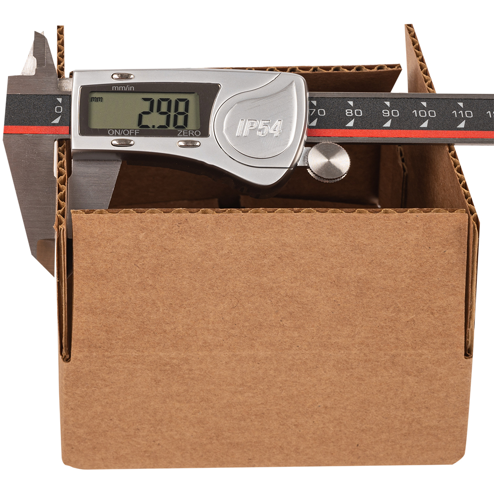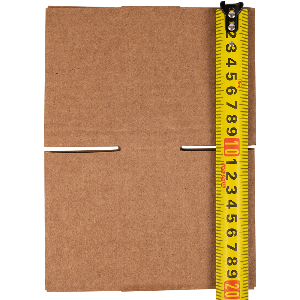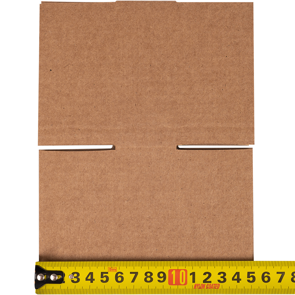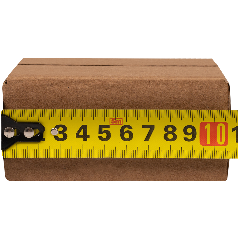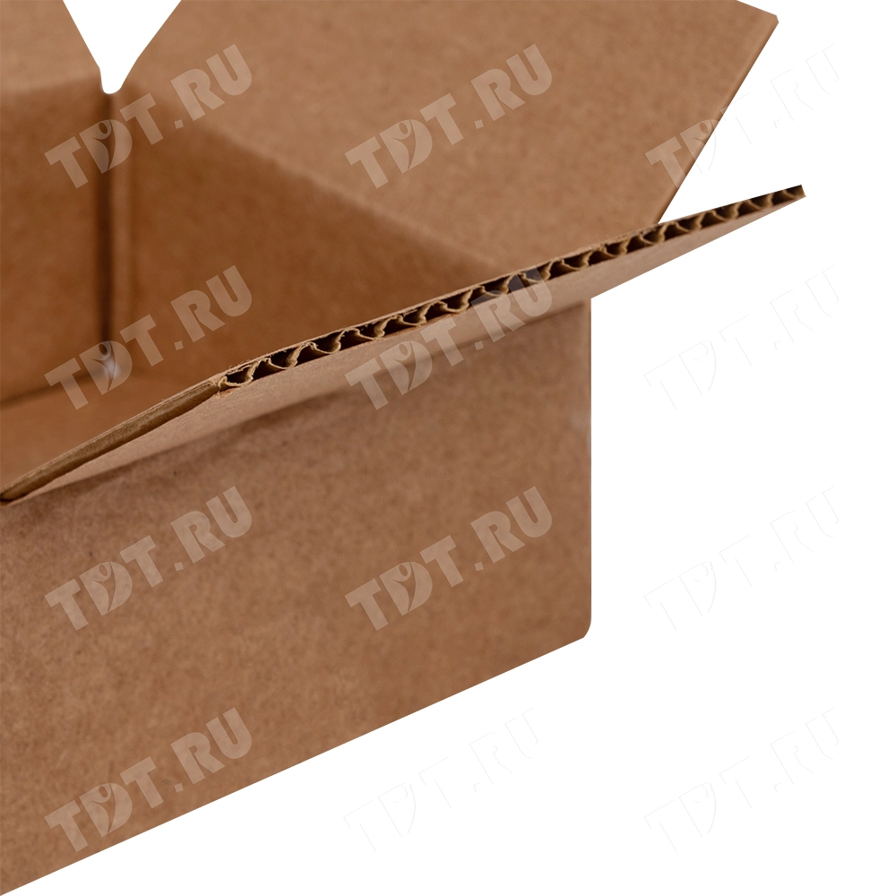 Картонный короб №151, длиной 100 мм, шириной 100 мм и высотой 45 мм. Изготовлен из трехслойного картона марки Т-23 В (целлюлоза). Полезный объём — 0.45 л.