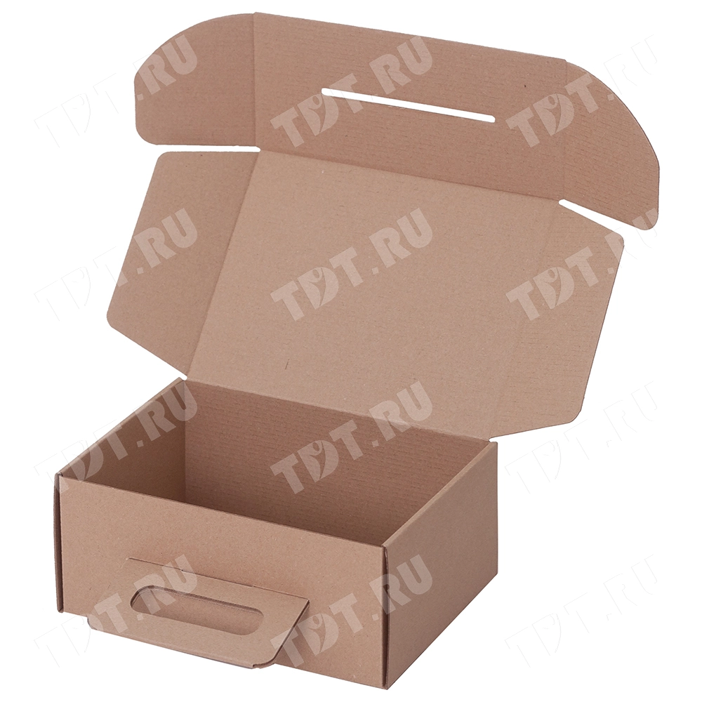 Короб КС-618 МГК с картонной ручкой, бурый, серии КС-600, длиной 225 мм, шириной 170 мм и высотой 100 мм. Изготовлен из микрогофрокартона Т-23. Полезный объём — 3.87 л.