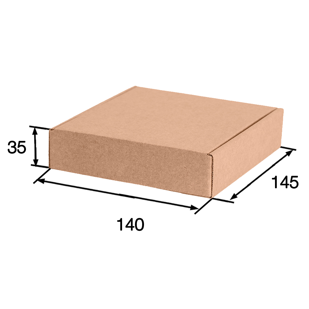 Короб КС-619 МГК, серии КС-600, бурый, длиной 140 мм, шириной 145 мм и высотой 35 мм. Изготовлен из микрогофрокартона Т-23. Полезный объём — 0.7 л.